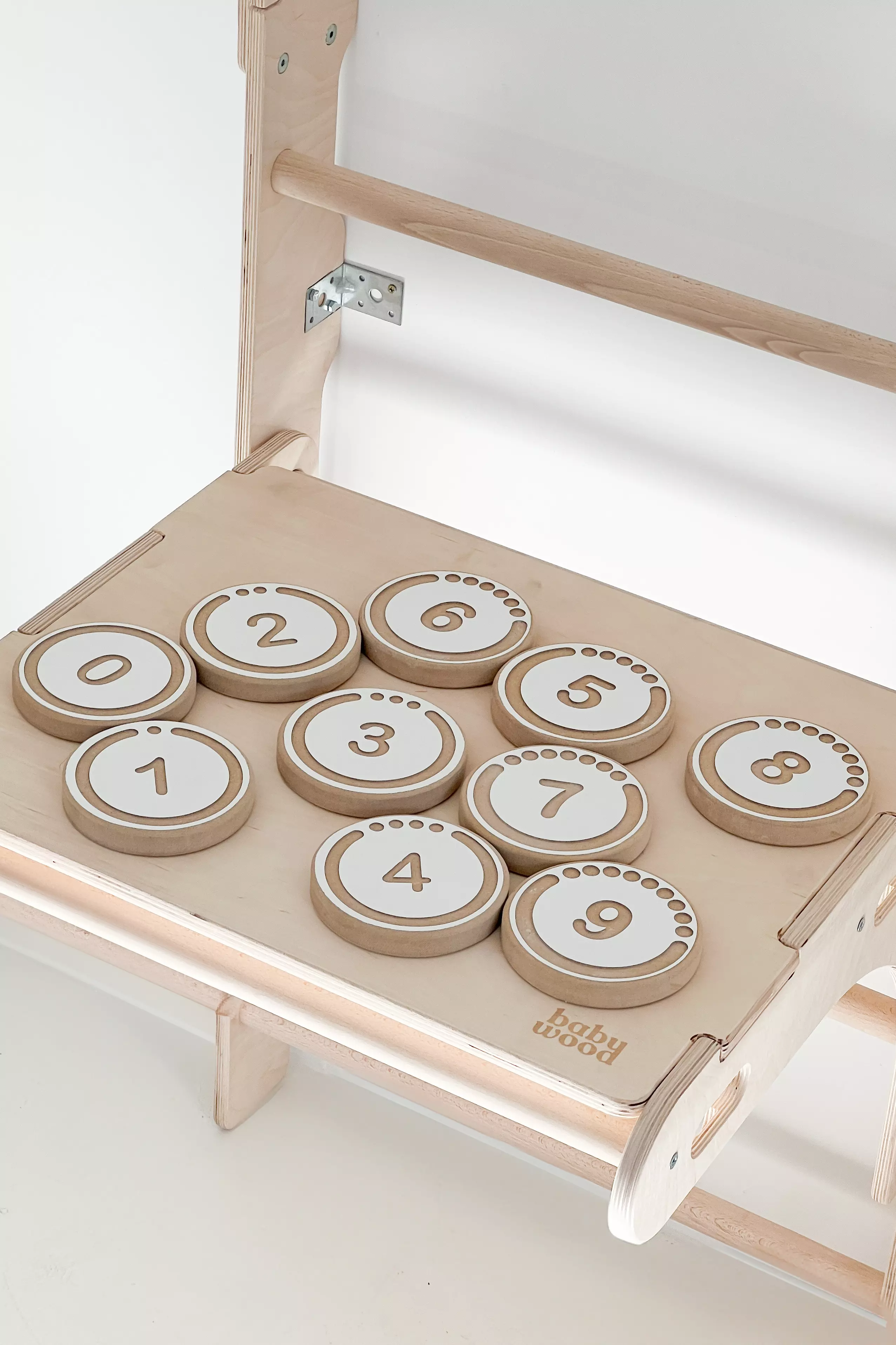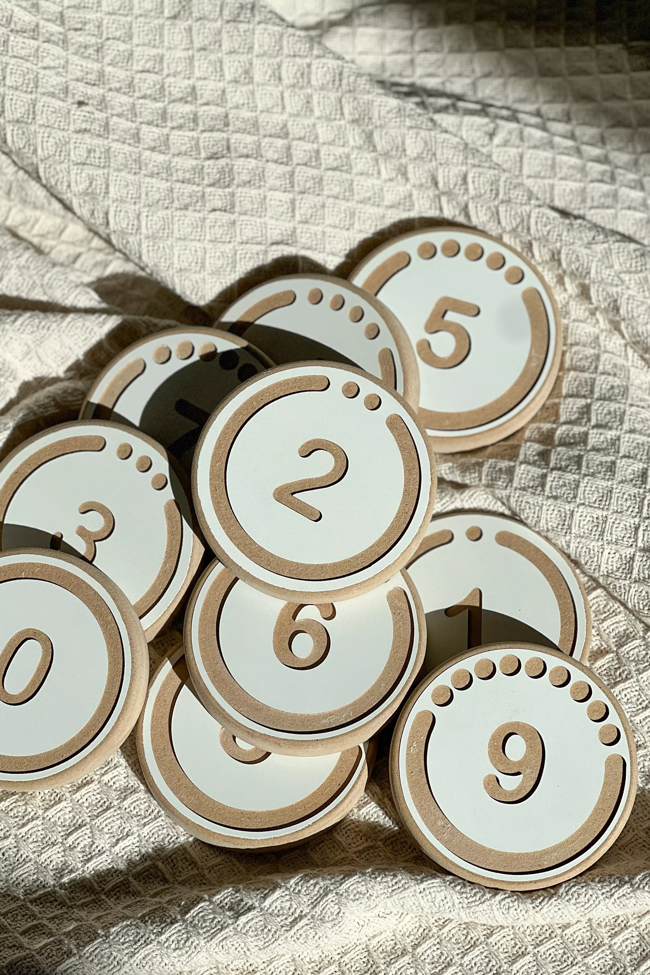 - 10 Holztafeln mit den Ziffern 0 bis 9
