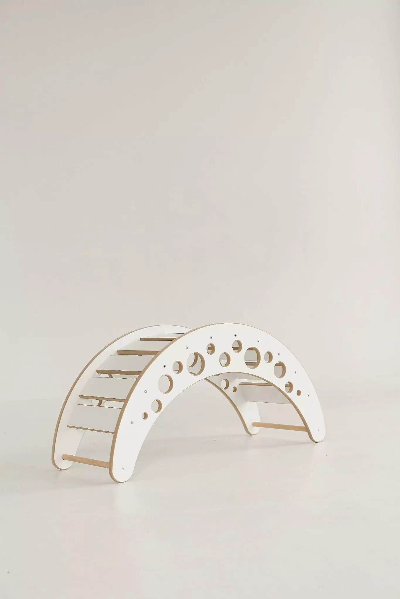 Die Holzleiter ist ein vollständig kompatibles Produkt mit der BabyWood-Wippe. Sie ist die perfekte Ergänzung und bietet eine Vielzahl neuer Möglichkeiten! Eine Seite des Brettes enthält Klettersteine, die Ihrem Kind das Klettern erleichtern. Die andere ist glatt, was Ihr Kind dazu anregt, sie als Rutsche zu benutzen. Die Sprossen sind auf dem Brett so angebracht, dass die Befestigung an der Wippe für die kleinen Benutzer völlig sicher ist.