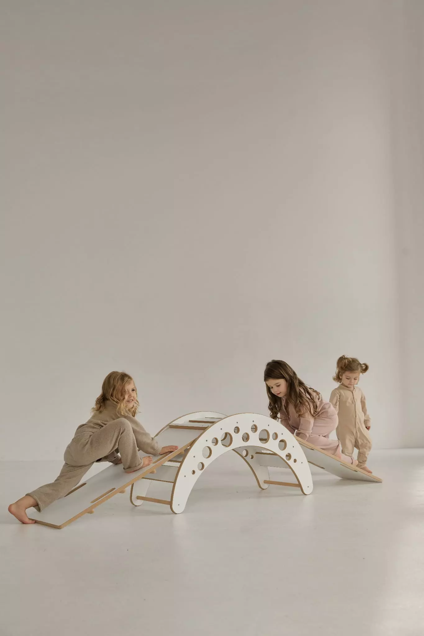 Eine Tischplatte, die mit der Holzwippe kompatibel ist, gibt uns noch mehr Möglichkeiten, dieses scheinbar einfache Möbelstück zu nutzen. Indem wir sie auf die Wippe montieren, erhalten wir eine zusätzliche "Arbeitsfläche", auf der wir spielen können. Im Handumdrehen lässt sich die Wippe in einen Tisch verwandeln, an dem das Kind seine Lieblingsmahlzeiten zu sich nehmen, etwas basteln oder mit Gleichaltrigen spielen kann. Dies ist eine großartige Lösung, besonders für kleine Räume. Sie spart mit Sicherheit Platz in einem kleinen Raum.