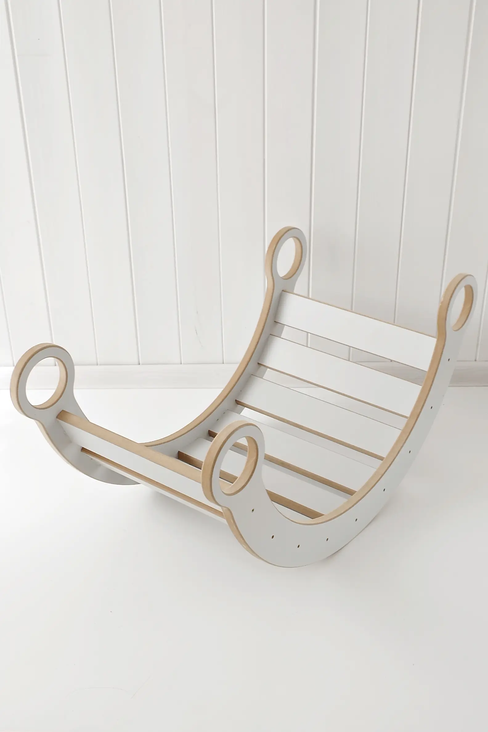 Die Baby Wood Wippe kann mit weiterem Zubehör ergänzt werden. Dazu gehören eine Leiter/Kletterwand, die sich in eine Rutsche verwandelt, ein Hocker oder eine Tischplatte, um den Spaß noch zu steigern! Sie können jederzeit verwendet werden, je nach den aktuellen Bedürfnissen des kleinen Benutzers.
