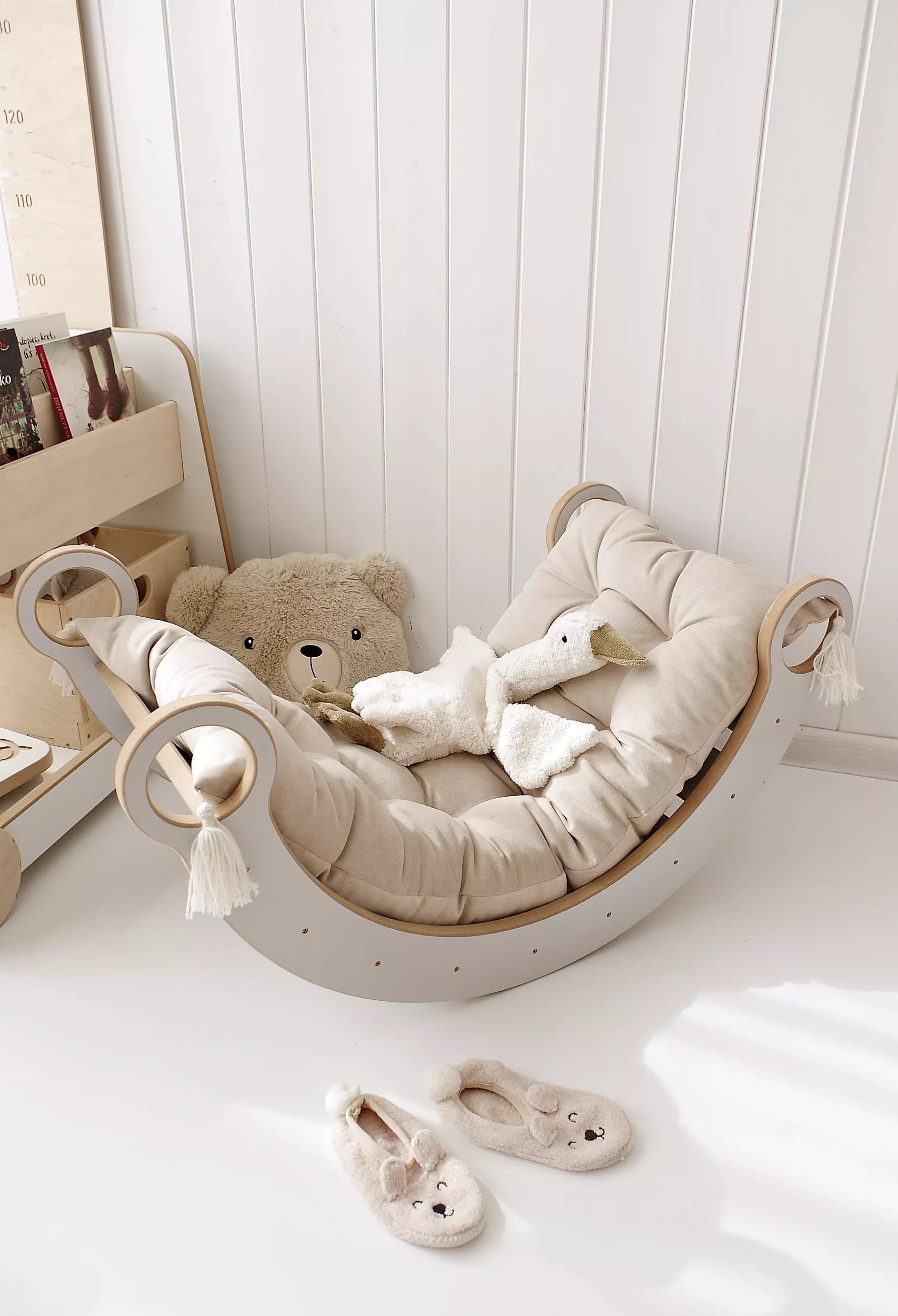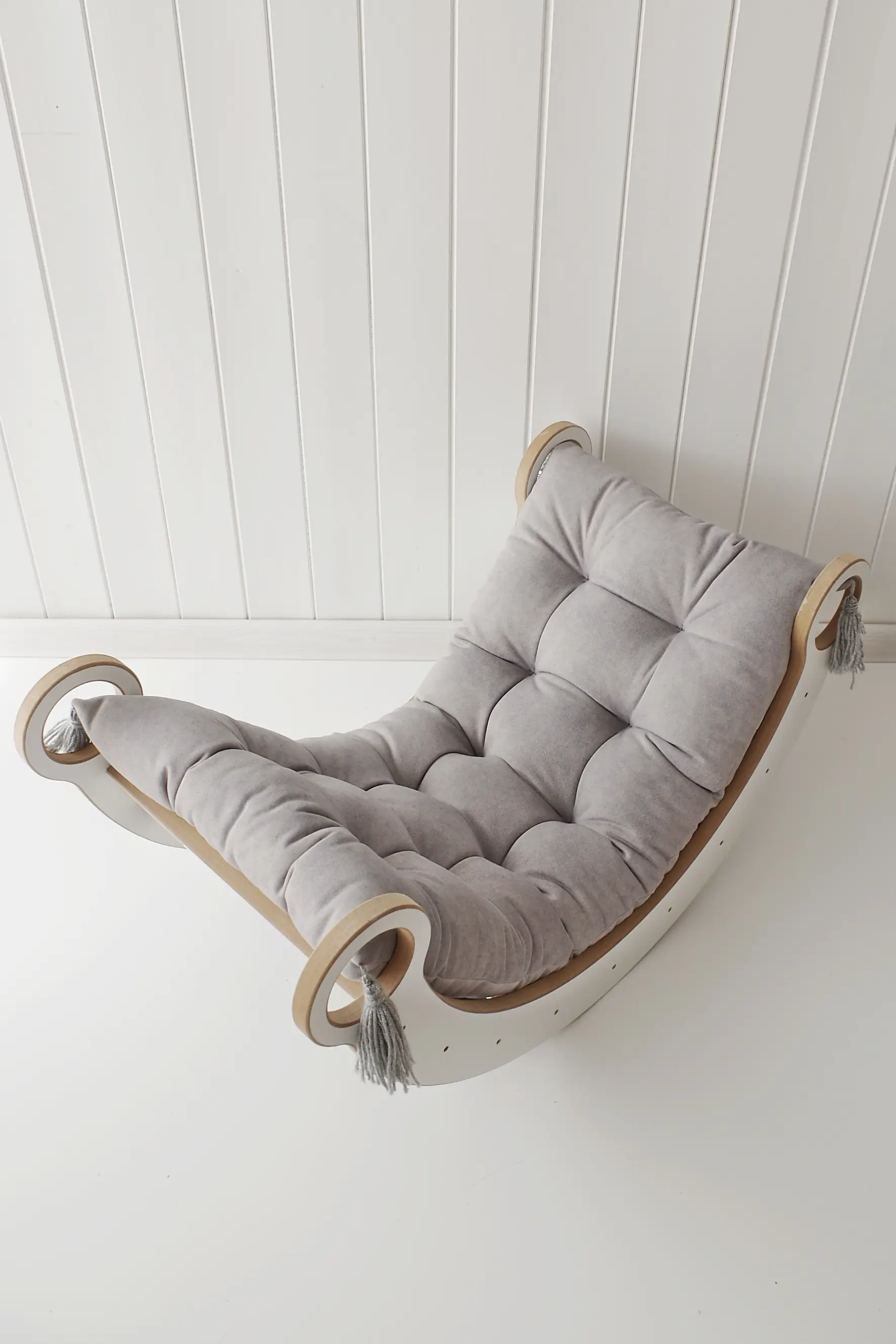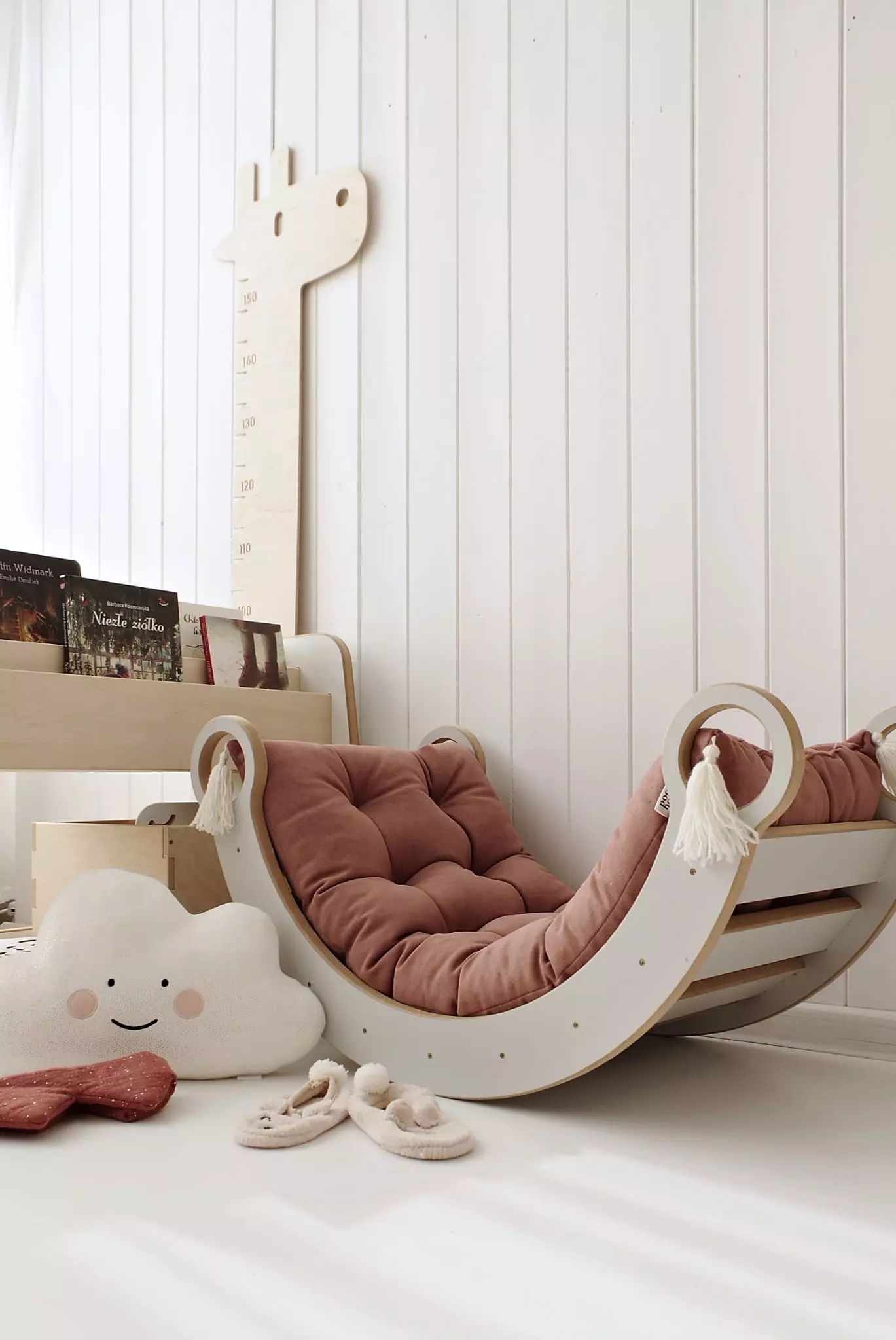 Ein zusätzliches Kissen für eine Wippe ist eine großartige Idee, um den Komfort beim Spielen zu erhöhen. Wählen Sie die Farbe, die am besten zu Ihrem Stil passt: beige, grau, olive oder rosa.