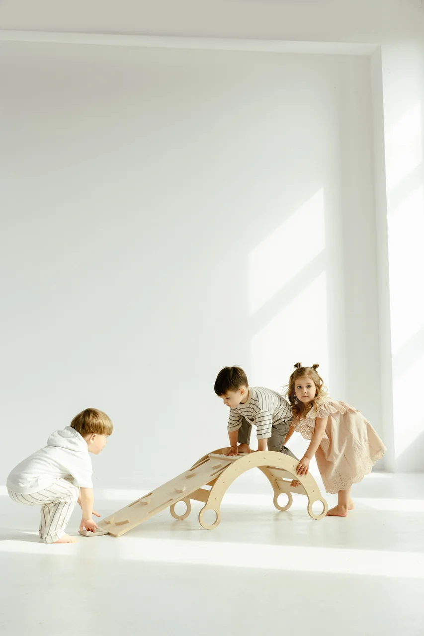 Platzsparend und funktional! Statt vieler Spielzeuge habe ich ein Set, das alles kann – Schaukeln, Rutschen und als Tisch dienen.