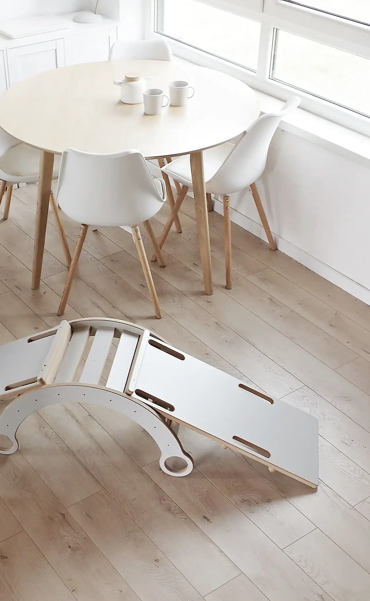 Die Wippe wird mit einer multifunktionalen Leiter geliefert. Die Holzleiter ist vollständig mit der BabyWood-Wippe kompatibel. Sie ist die perfekte Ergänzung zur BabyWood-Wippe und bietet viele neue Möglichkeiten! Eine Seite des Brettes ist mit Sprossen versehen, die dem Kind das Klettern erleichtern. Die andere Seite ist glatt, was Ihr Kind dazu anregt, sie als Rutsche zu benutzen. Die Sprossen sind so auf dem Brett angebracht, dass es für den kleinen Benutzer völlig sicher ist, es an der Wippe zu befestigen. Das geformte Brett eignet sich auch gut als Balancierbrett - legen Sie es einfach auf die BabyWood-Wippe.