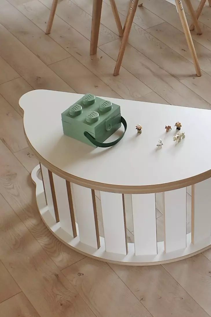 Eine Tischplatte, die mit der BabyWood-Wippe kompatibel ist, gibt Ihnen noch mehr Möglichkeiten, dieses scheinbar einfache Möbelstück zu verwenden. Indem wir sie auf die Wippe montieren, erhalten wir eine zusätzliche "Arbeitsfläche" zum Spielen. Im Handumdrehen lässt sich die Wippe in einen Tisch verwandeln, an dem das Kind seine Lieblingsspeisen einnehmen, basteln oder mit Gleichaltrigen spielen kann. Dies ist eine großartige Lösung, besonders für kleine Räume. Sie spart mit Sicherheit Platz in einem kleinen Raum.