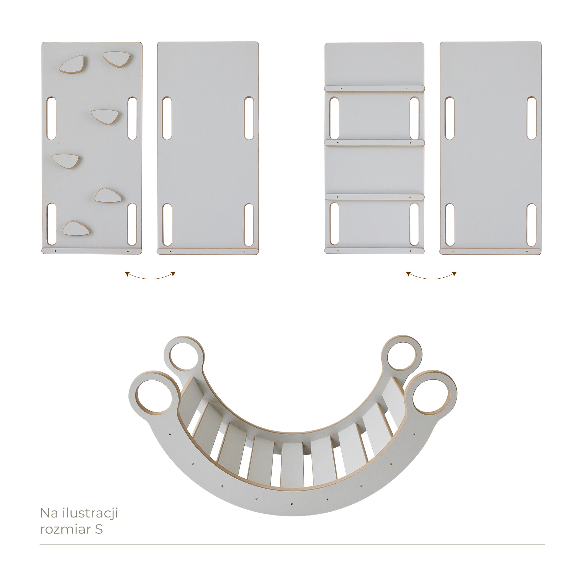 Für die Herstellung unserer Produkte verwenden wir hochwertige, zertifizierte Materialien. Wir sorgen uns nicht nur um die Sicherheit Ihrer Kinder, sondern auch um die Zukunft unseres Planeten, indem wir bei der Herstellung natürliche Rohstoffe verwenden. Apropos Kinder: Die Seiten der Wippe und des Zubehörs sind abgerundet und die Oberfläche ist völlig glatt, um das Risiko unangenehmer Unfälle beim Spielen zu minimieren. Und: Die bequemen Griffe machen es dem Kind leicht, die Wippe in Bewegung zu setzen und jederzeit zu stoppen.