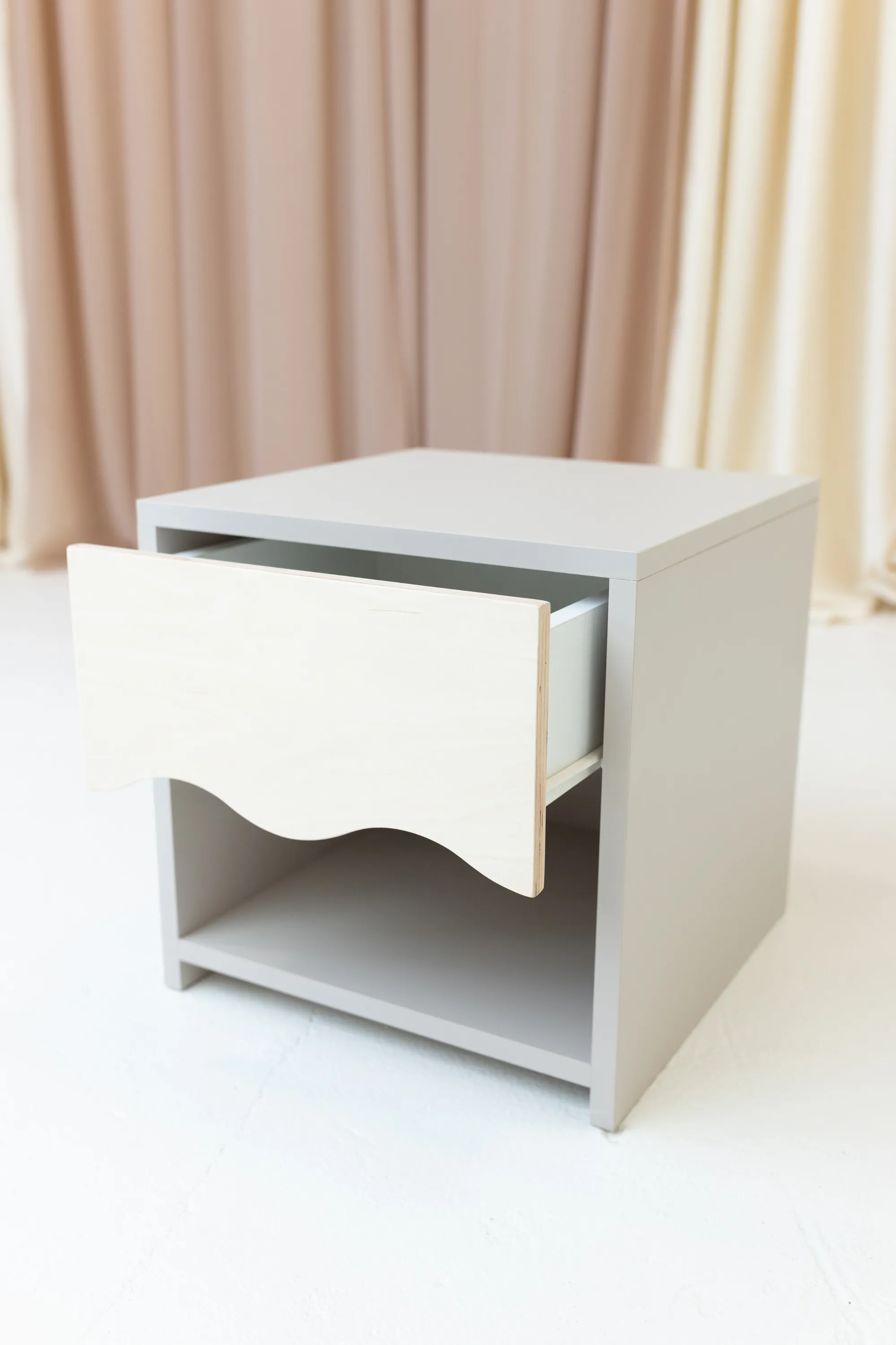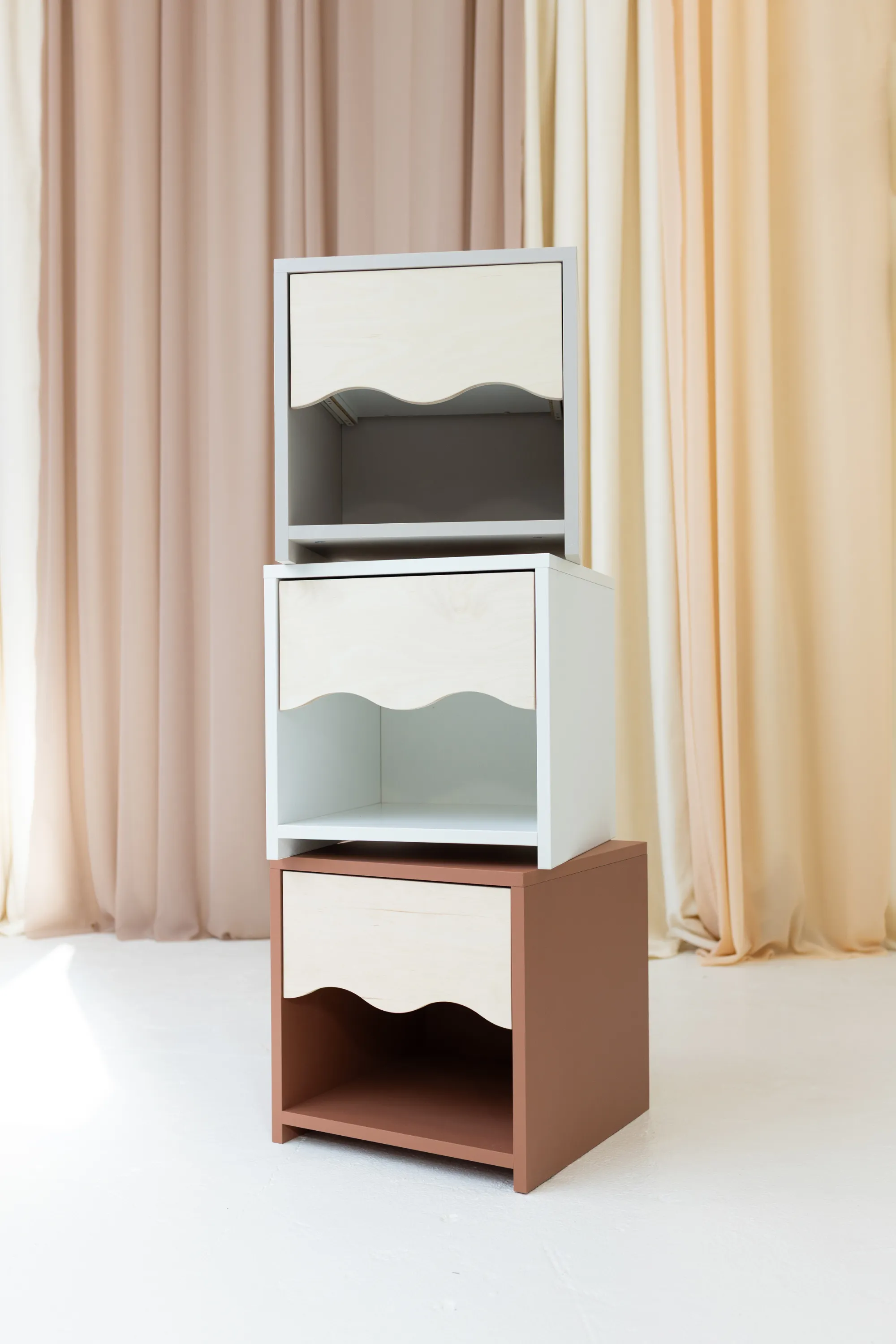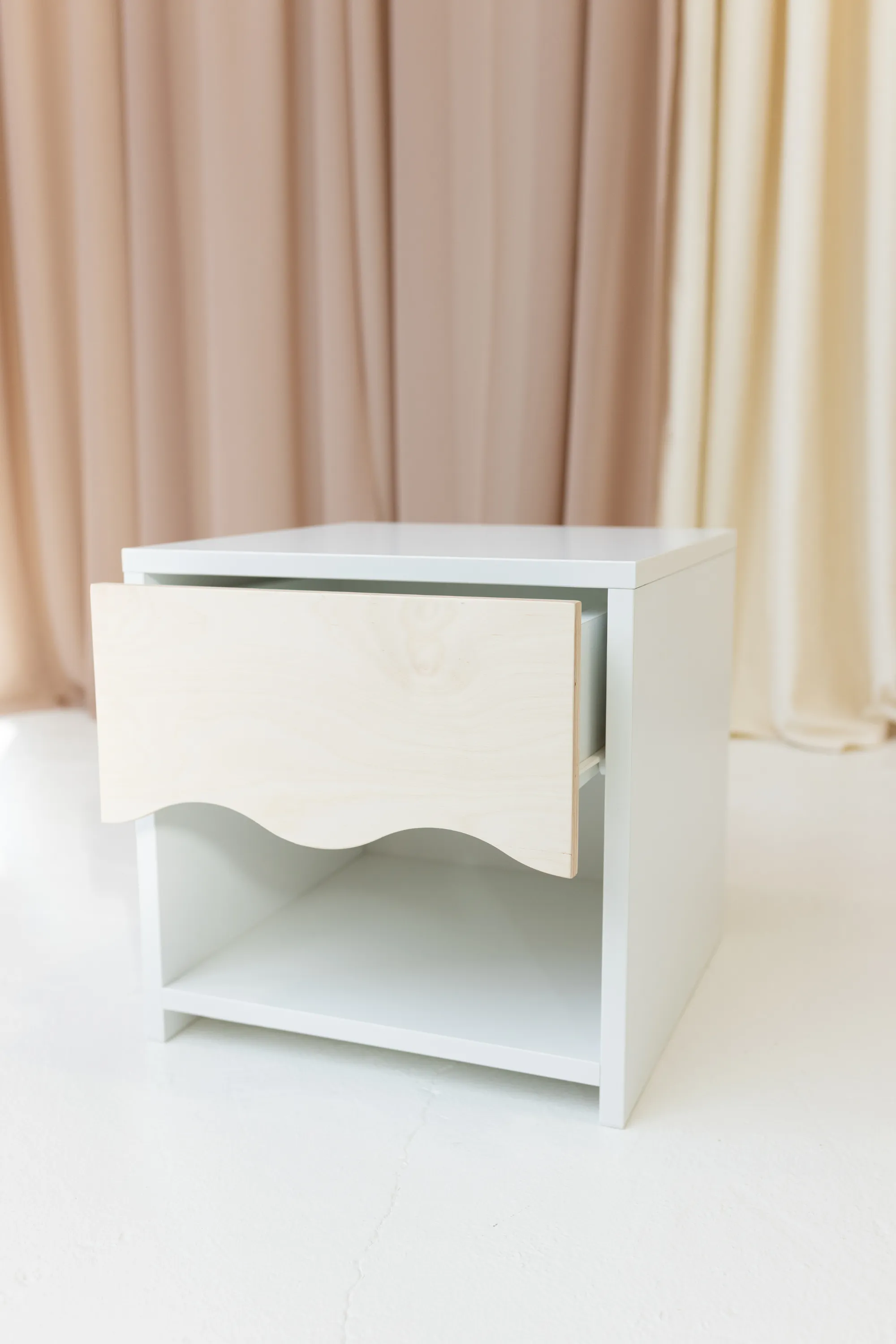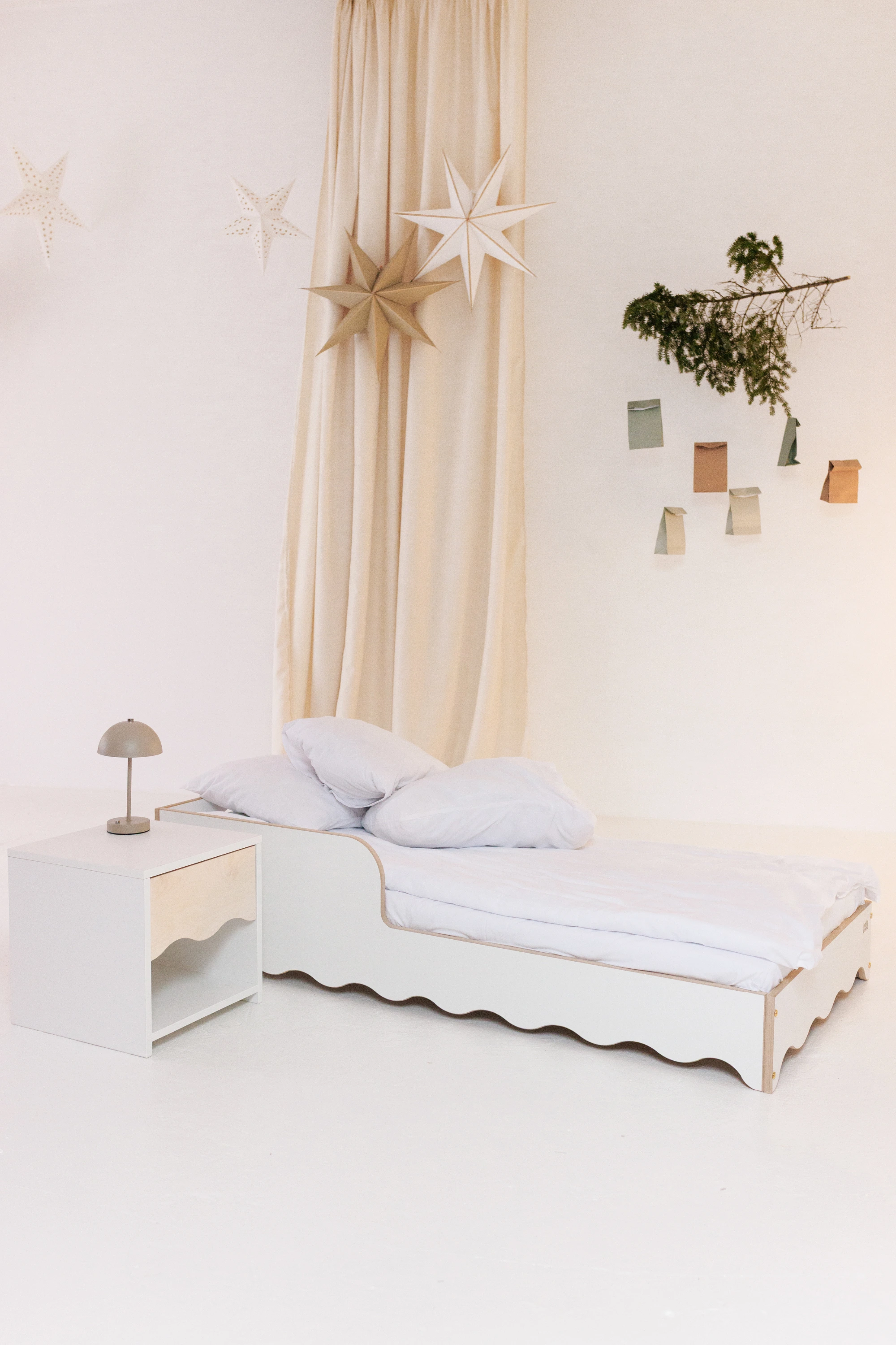 Der WAVE Nachttisch ist die perfekte Ergänzung für das Kinderzimmer – leicht, funktional und so gestaltet, dass auch kleine Kinder ihn selbstständig nutzen können.