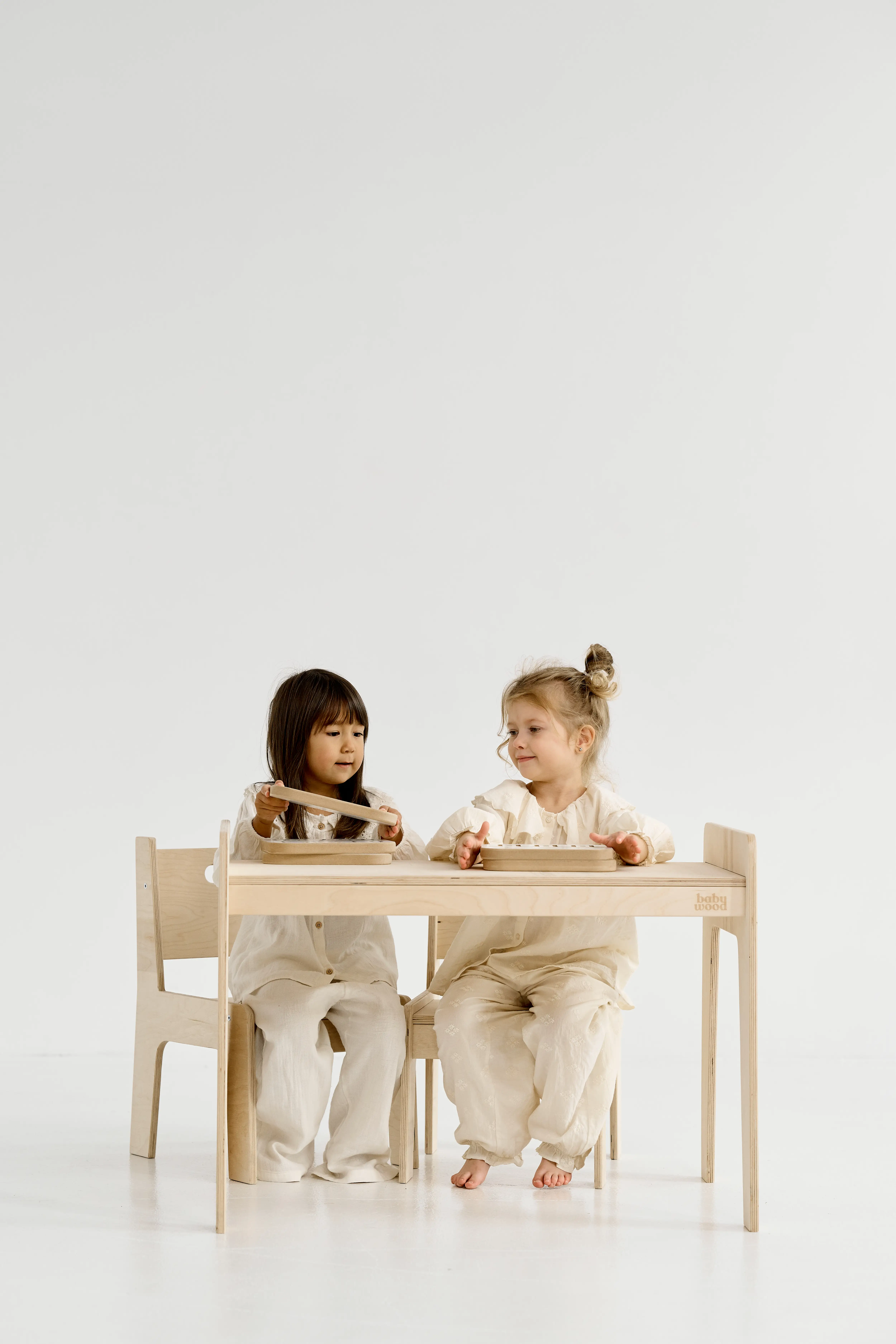 3. Entwicklung der motorischen Fähigkeiten: Durch das Sitzen am Tisch und das Benutzen des Stuhls entwickeln die Kinder ihre motorischen Fähigkeiten, wie z. B. das Greifen, Umstellen und Ordnen von Gegenständen.