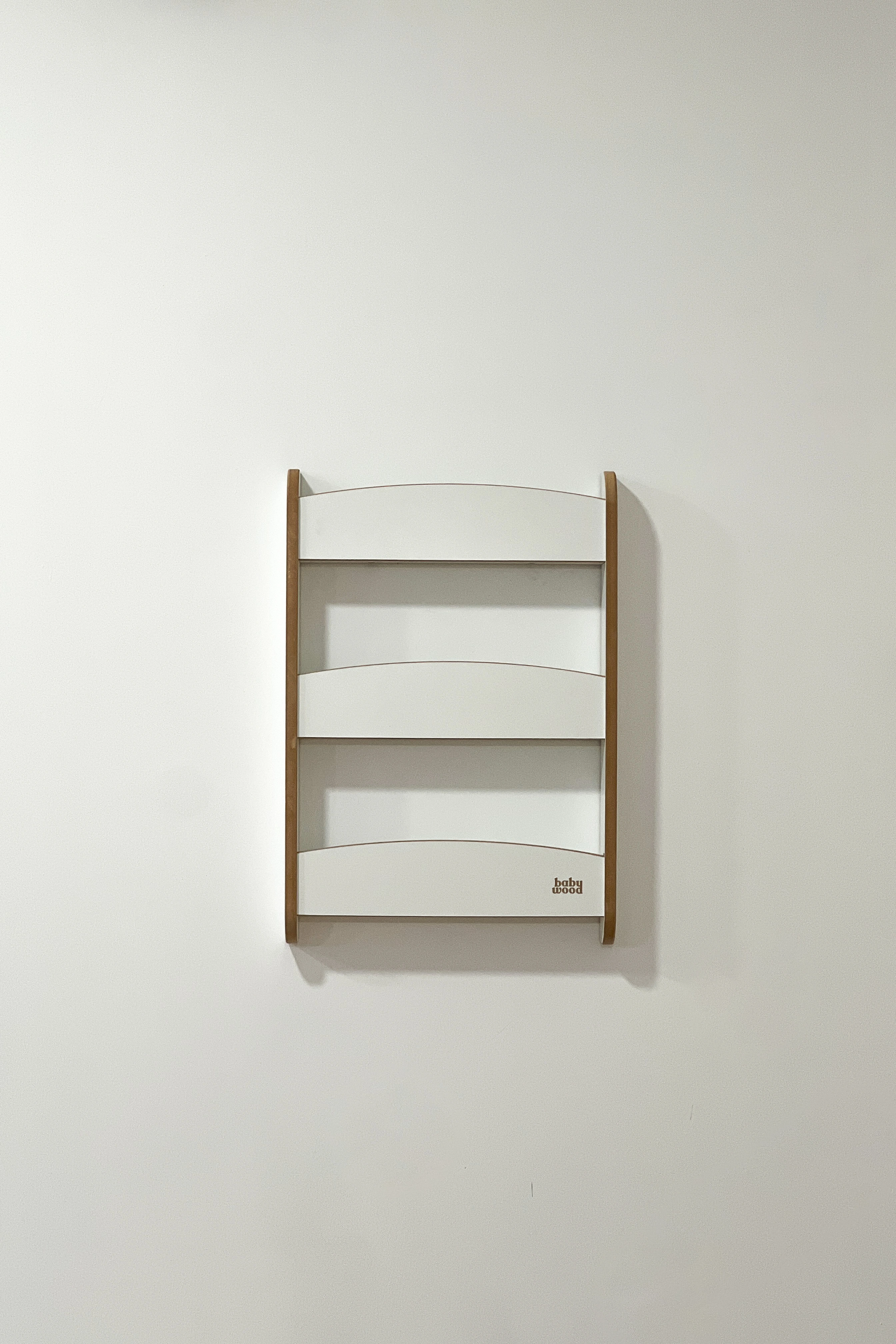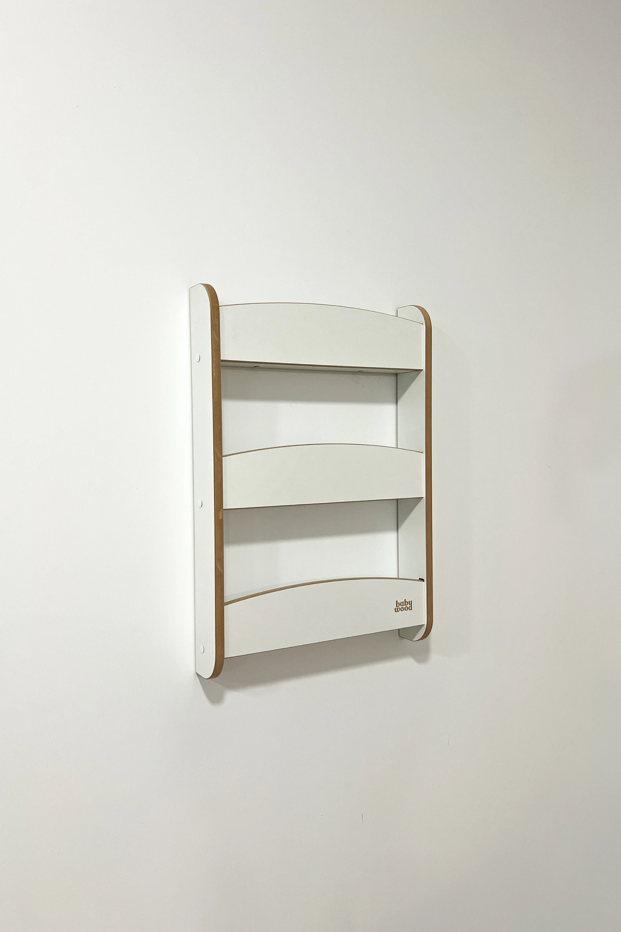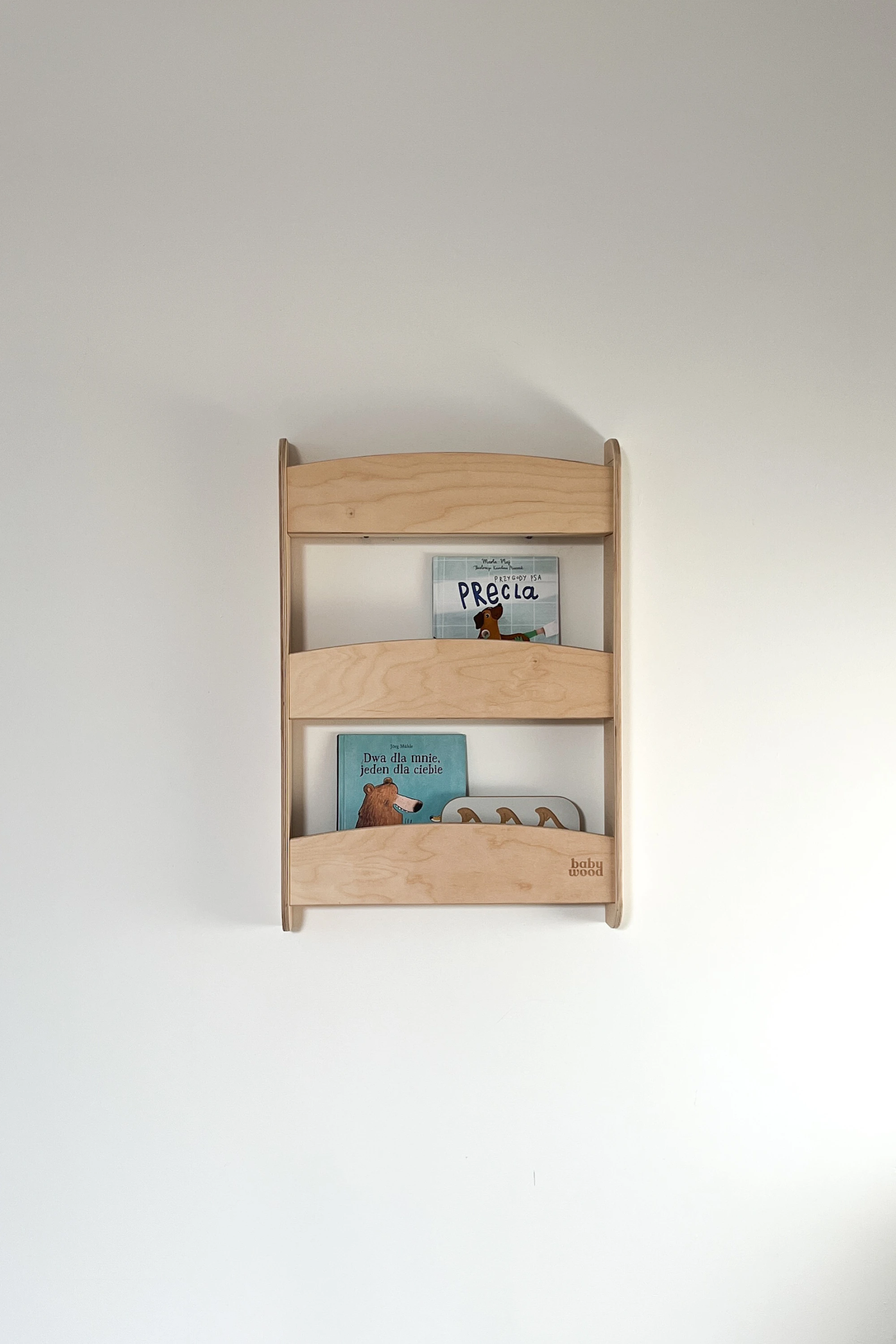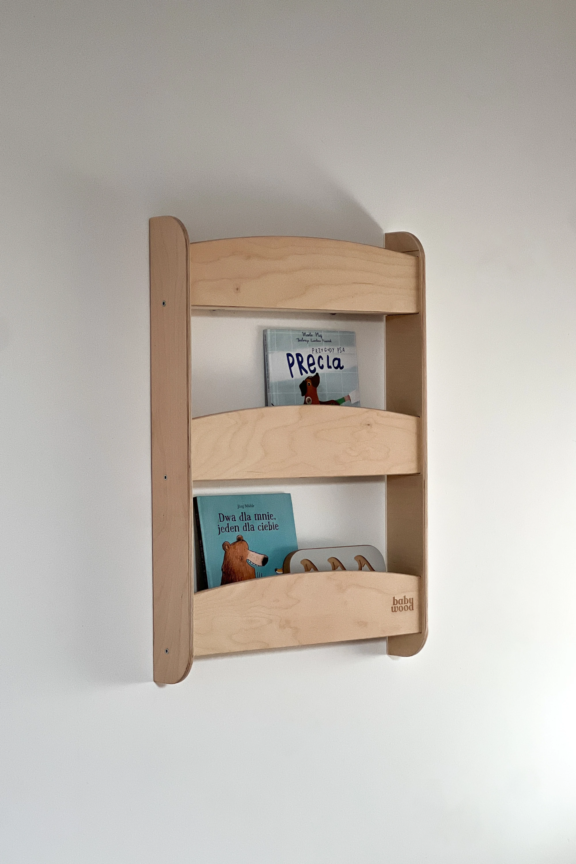 Stell dir ein Regal vor, das nicht nur Ordnung schafft, sondern auch Teil eurer täglichen Rituale wird. Drei Ebenen bieten Platz für Bücher, Erinnerungsstücke und all die Kleinigkeiten, die für dein Kind wichtig sind. Die Höhe? Bestimmst du selbst. Auf der unteren Ebene sind Bücher immer in Reichweite kleiner Hände; weiter oben kann der Elternteil über die Ordnung wachen. Und die süße Wellenkante verleiht dem Regal Wärme und macht die Bücher zu einem dekorativen Element.