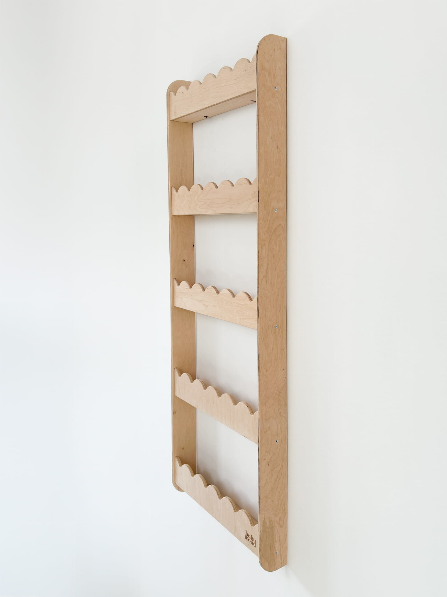 Ein Wandregal WAVE ist mehr als nur ein Bücherregal - es ist eine clevere und schöne Lösung, die Kinder und Eltern lieben werden. Ideal für Bücher, aber auch für kleine Dinge, die euch am Herzen liegen - ein Lieblingskuscheltier, das erste Foto aus dem Kindergarten oder ein Urlaubsandenken. Durch die Wandmontage bleibt mehr Platz auf dem Boden zum Spielen (und weniger zum Aufräumen!).