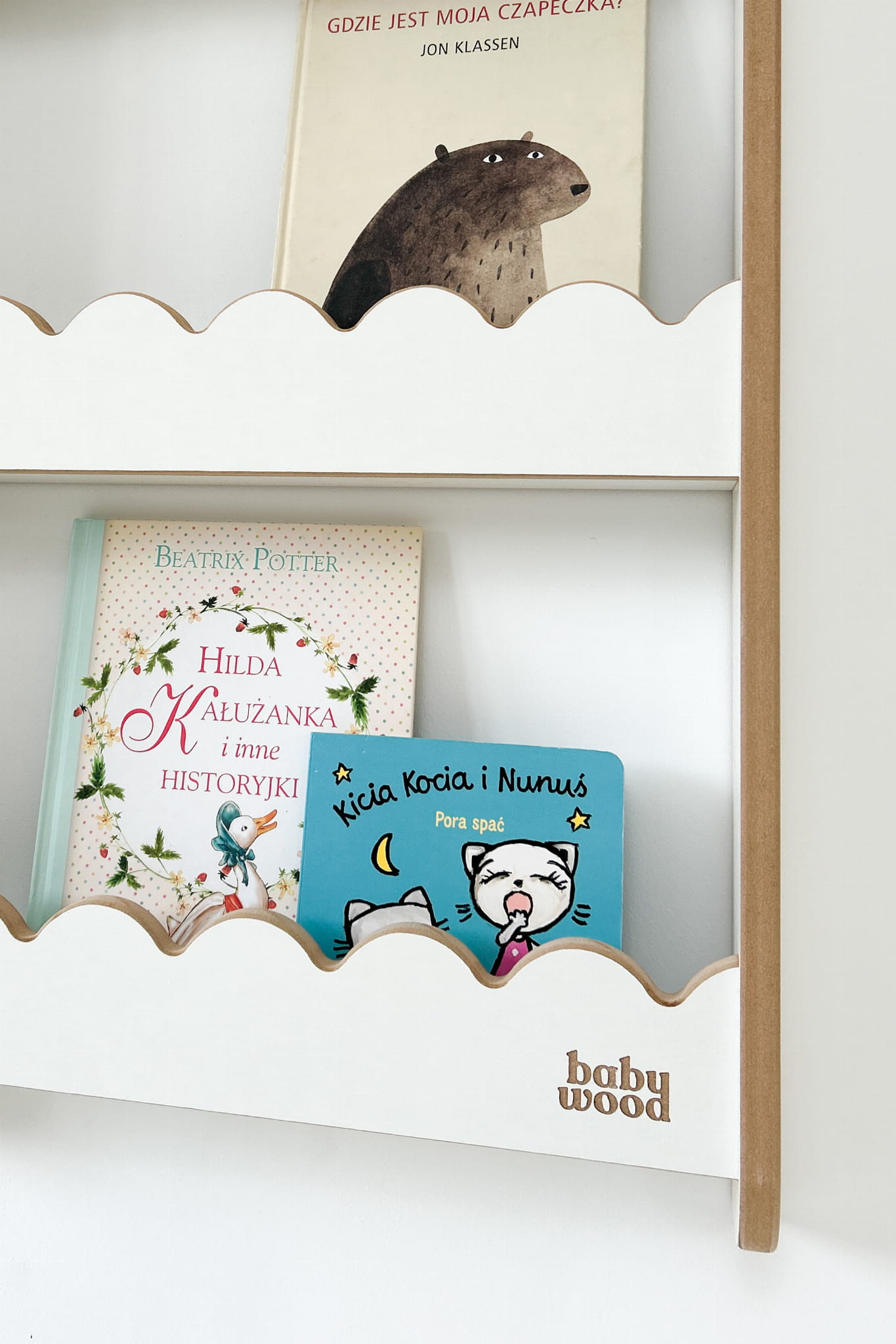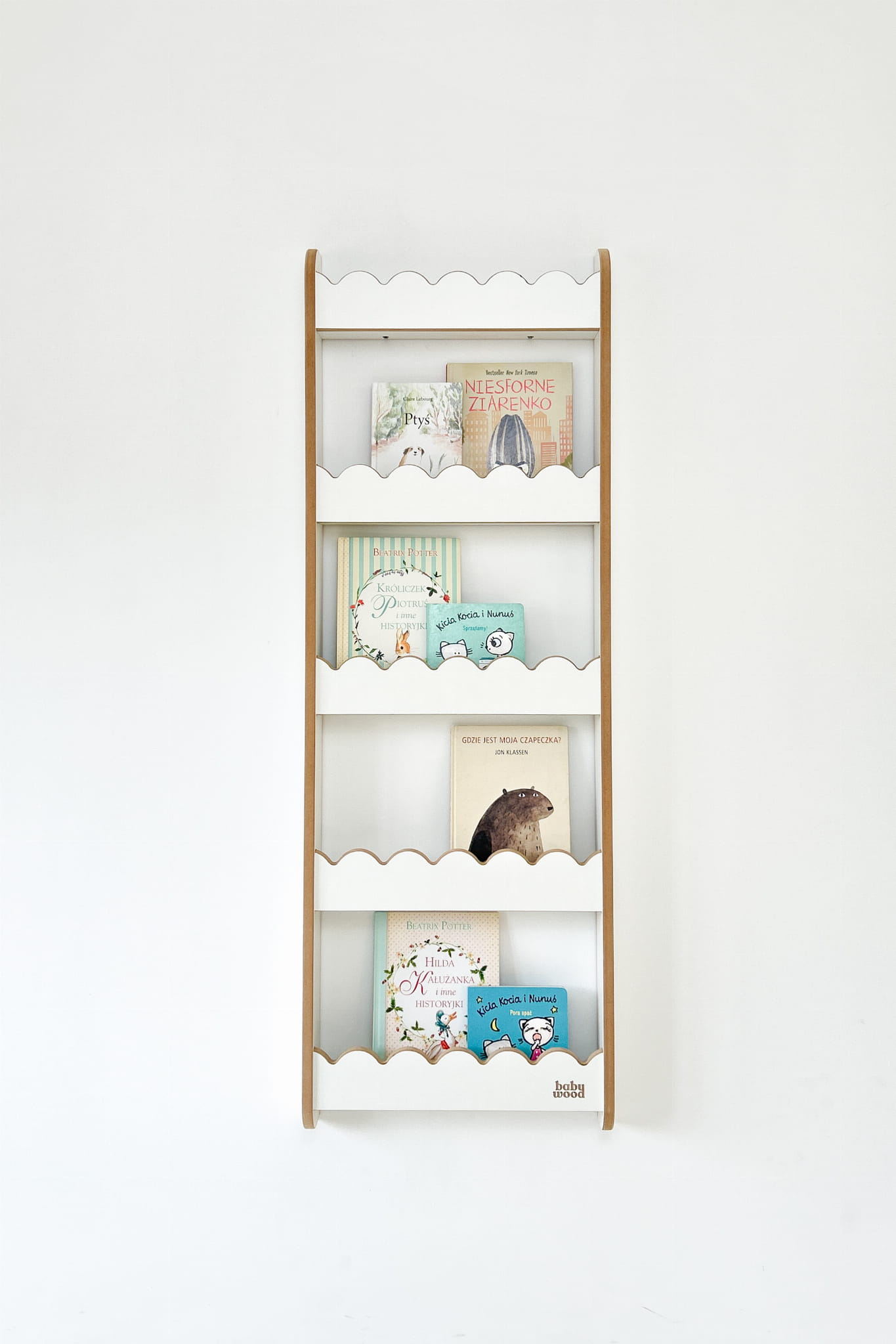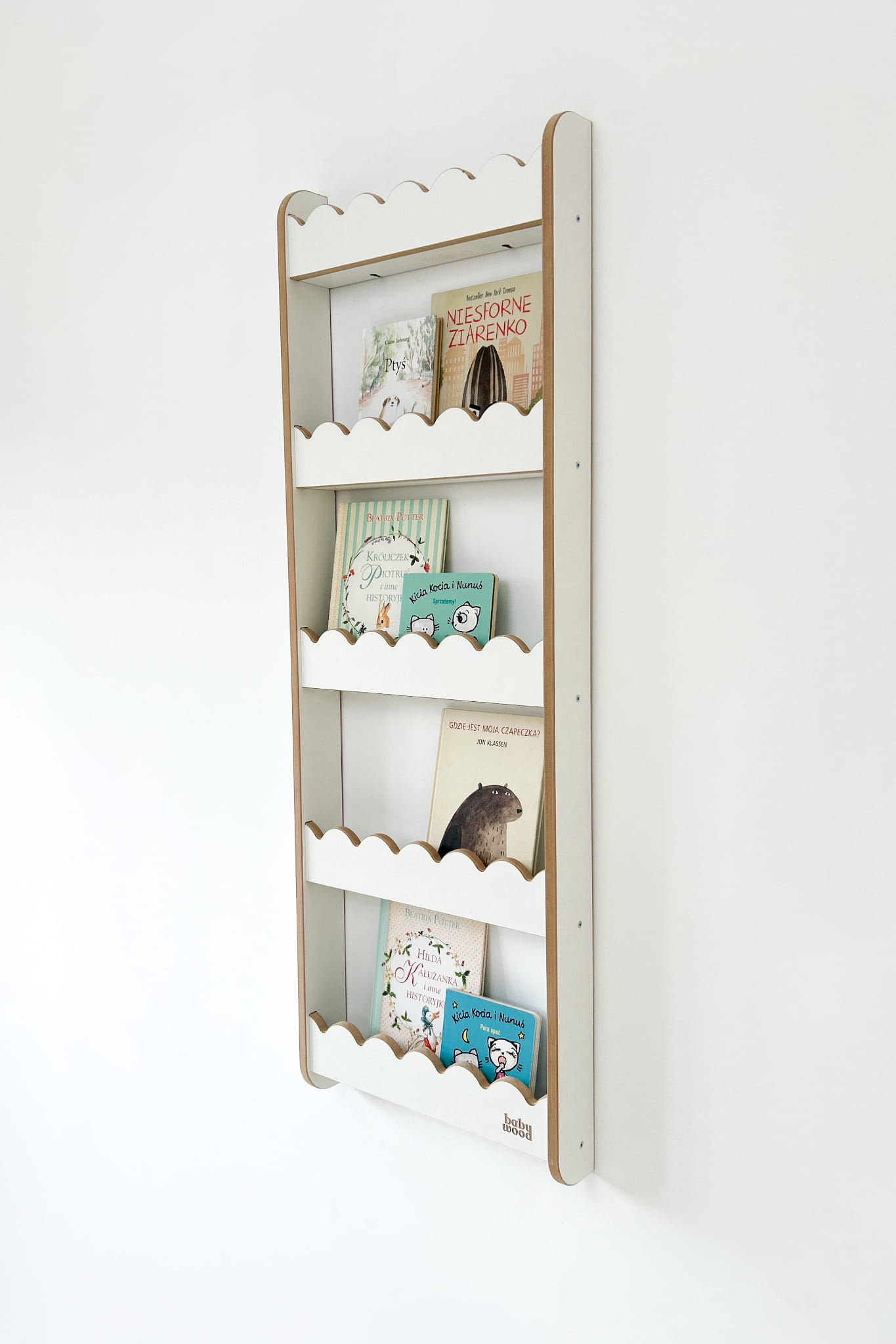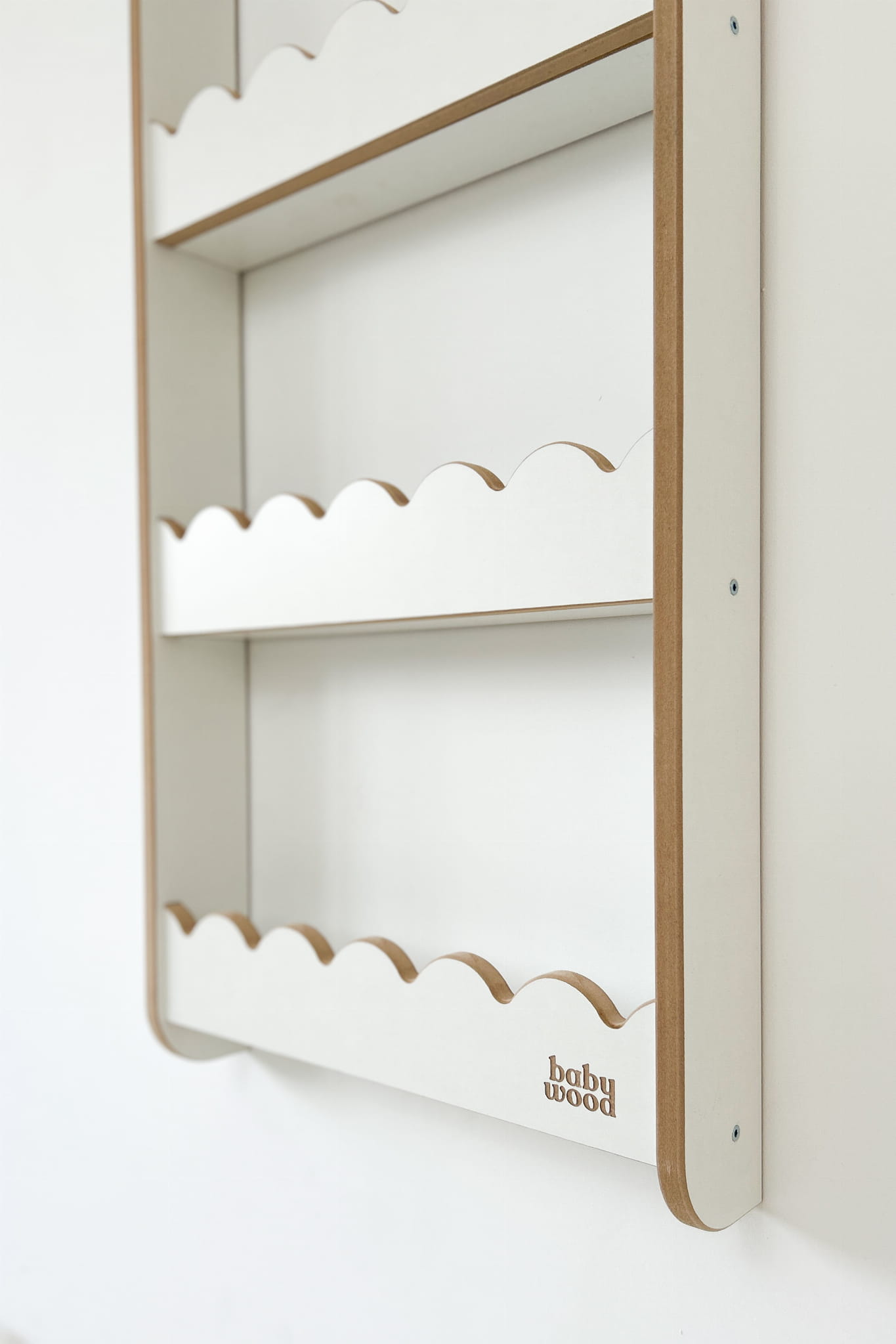 Ideal zur Präsentation von Büchern und Spielzeug. Die Welle verleiht Leichtigkeit und Modernität.