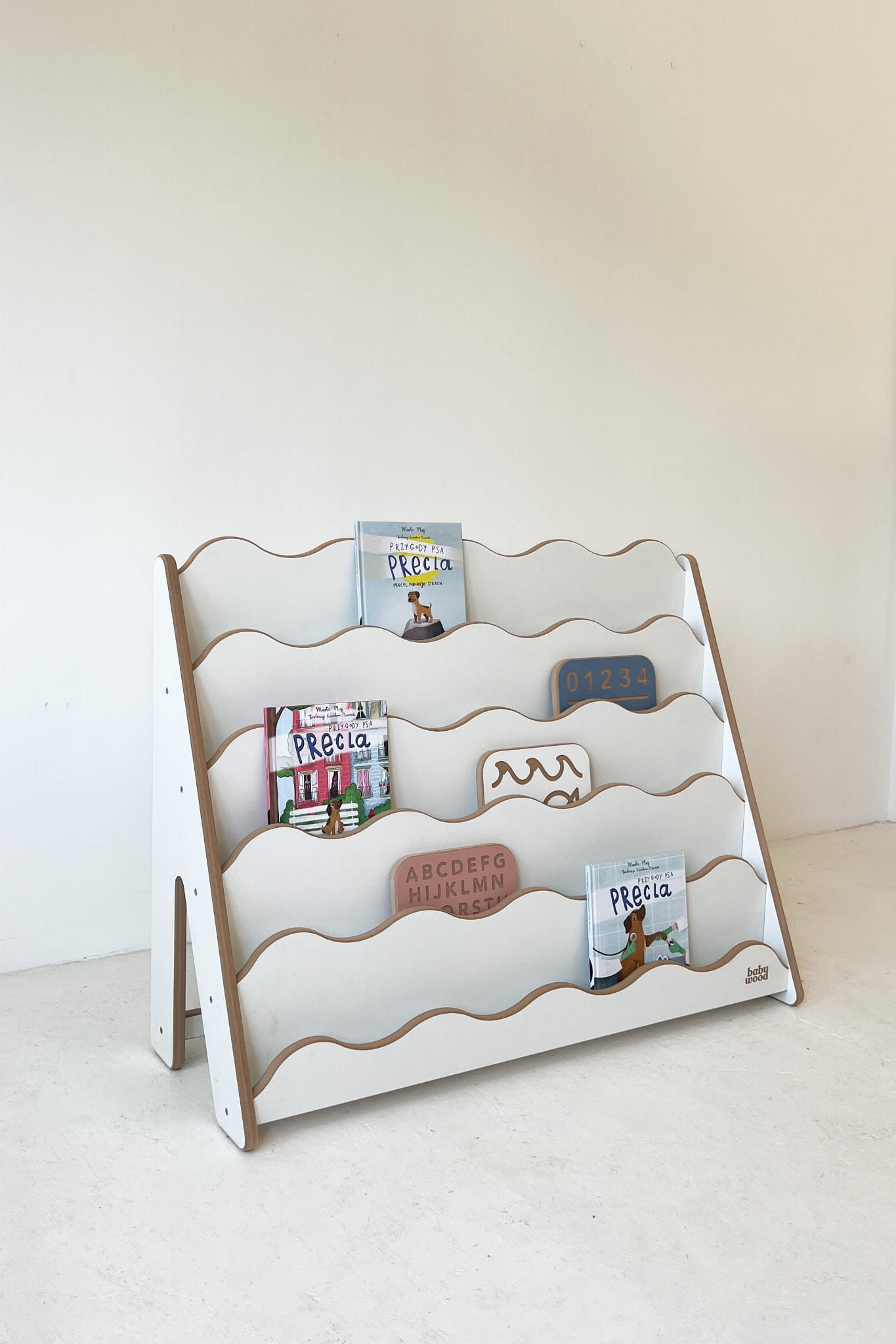Its height was designed in the spirit of Montessori – low, accessible and inviting. That way, children can easily reach for their favourite titles and decide what to read all by themselves. It’s a smart way to foster independence and shape reading taste from the earliest years.