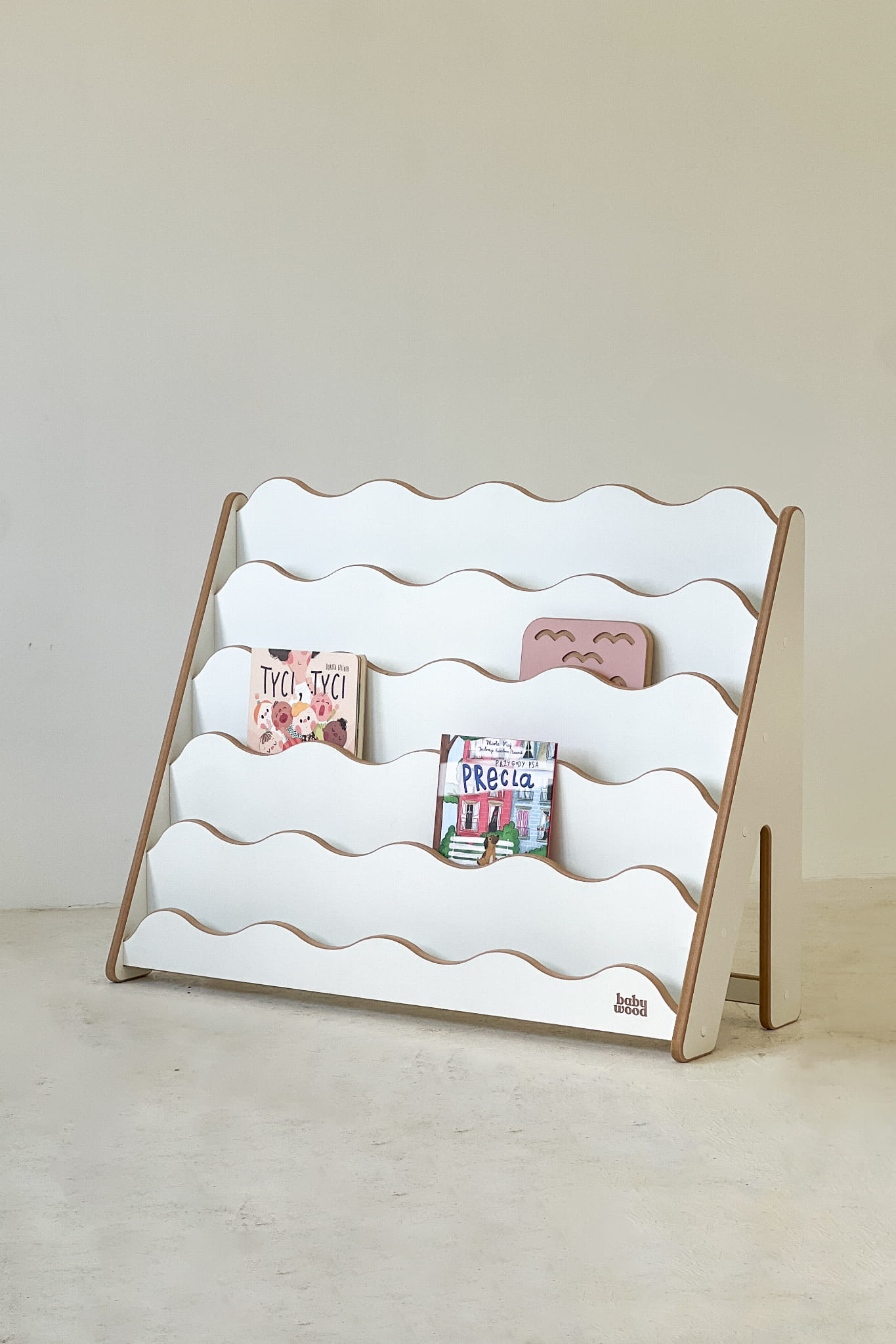 The gentle wave-shaped fronts add softness and warmth to the interior, turning the bookshelf into a charming decorative piece that immediately catches the eye.But more importantly – it’s a piece of furniture that helps children discover the joy of reaching for books on their own. Paired with the beds from the same collection, the WAVE Bookshelf creates a stylish and functional setup for any child’s room.