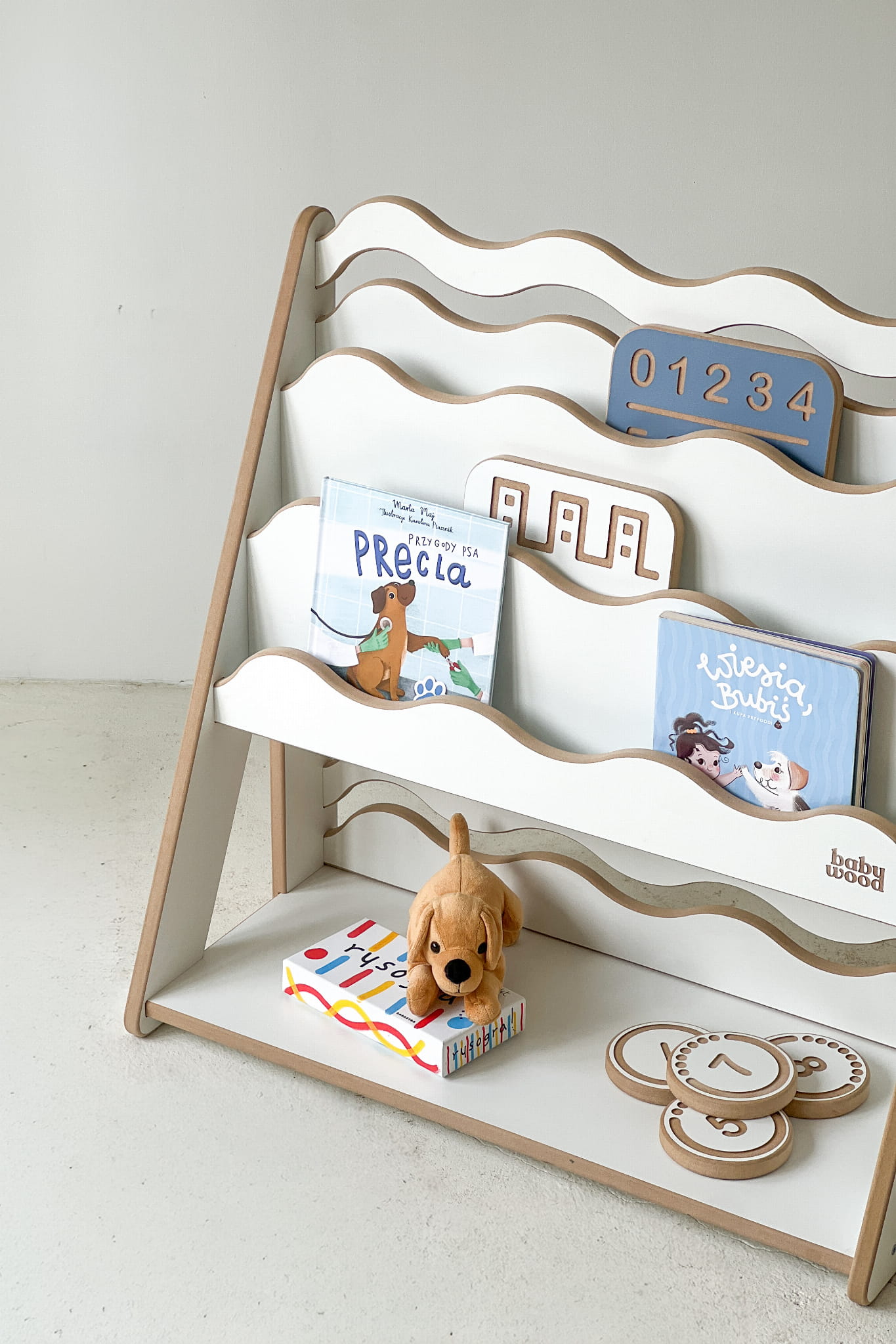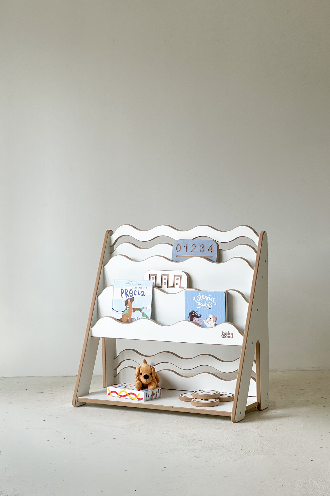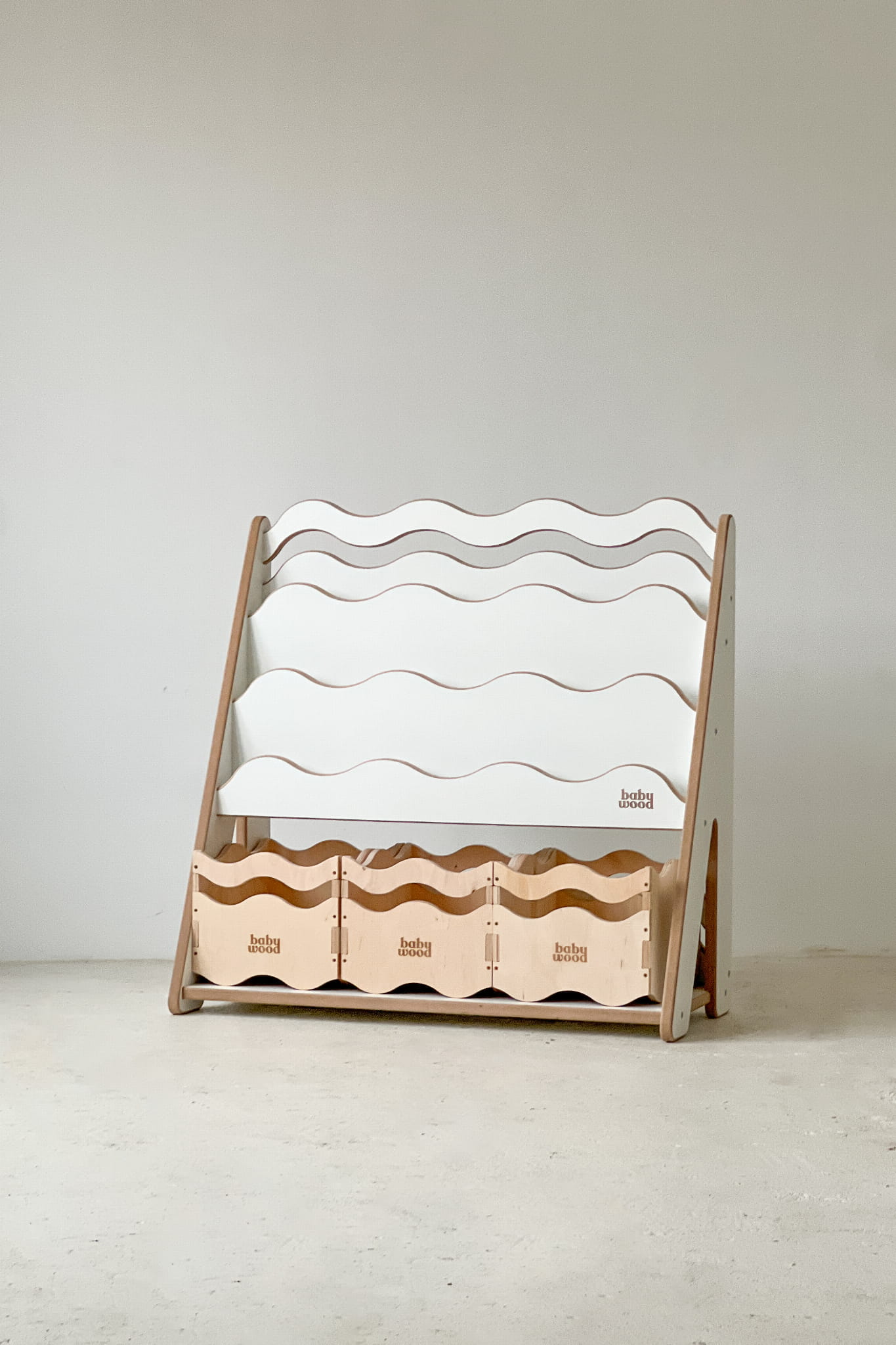 The Bookcase for books and toys WAVE is a practical combination of two functions in one – a bookcase and a shelf unit. It was created for parents who want to have space in their child’s room for both books and toys, but may not always have room for two separate pieces of furniture.