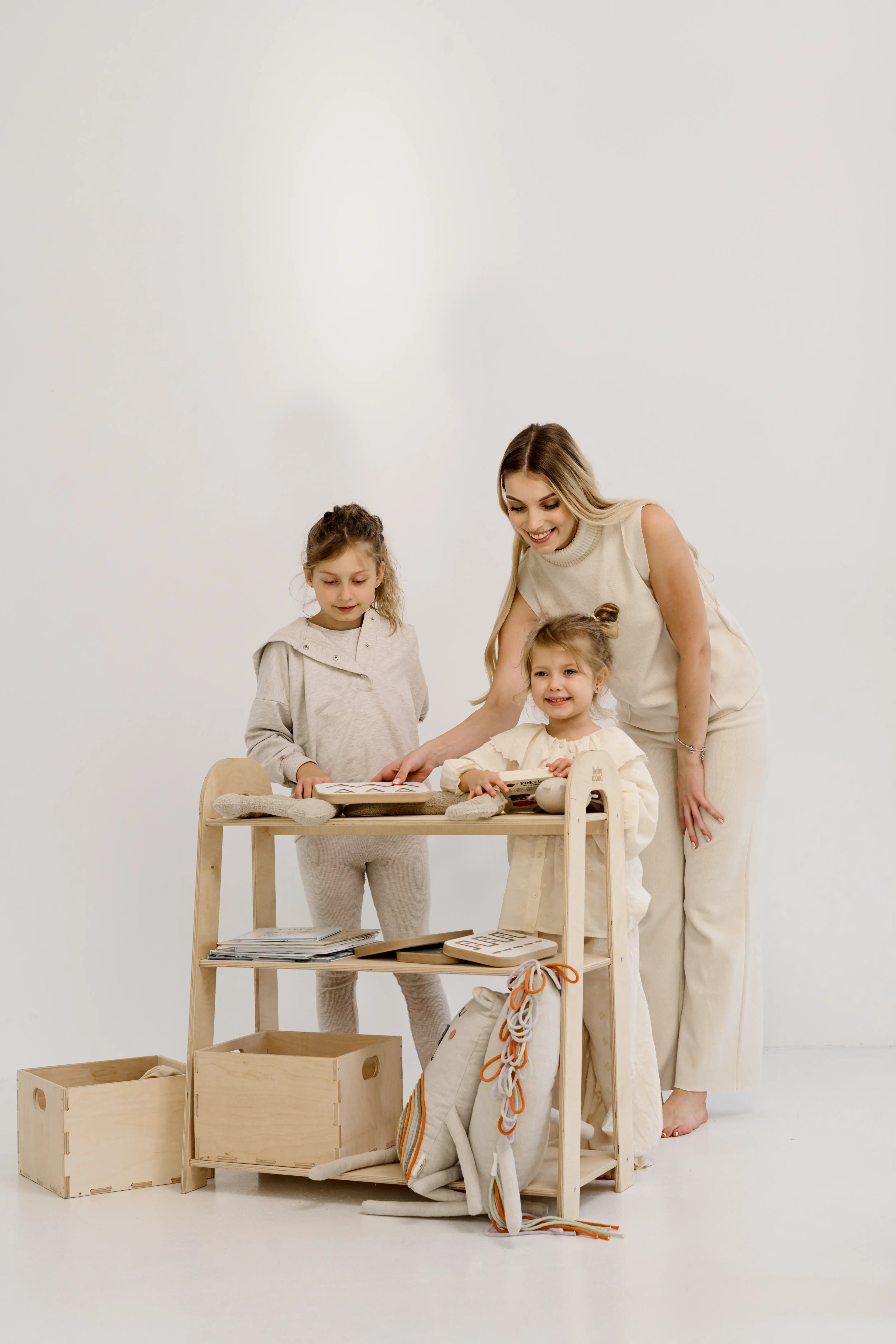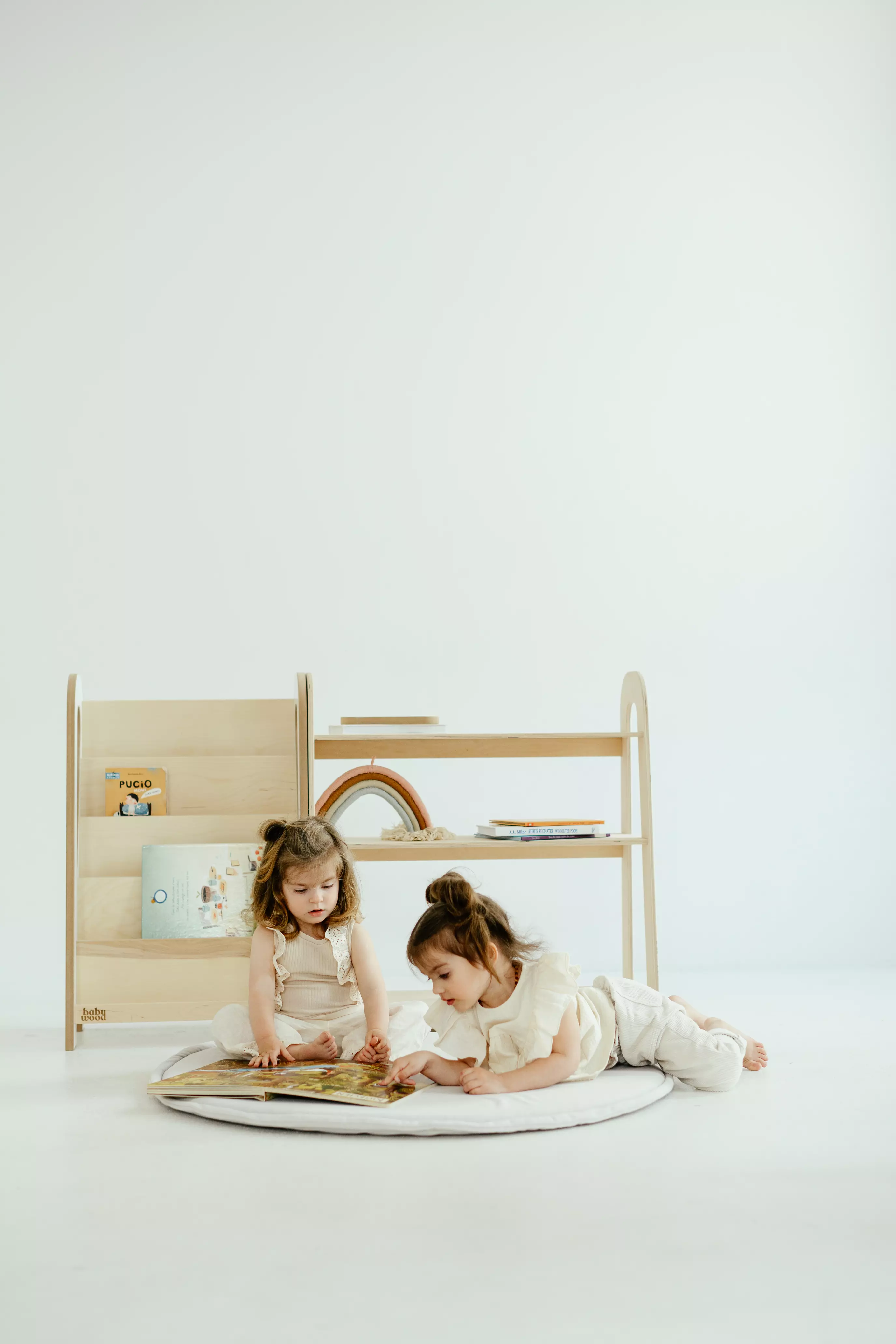 The height of the bookcase is designed to match the height of its small user. The height-matched furniture encourages the toddler to use it independently, which strengthens the sense of self-confidence and responsibility.