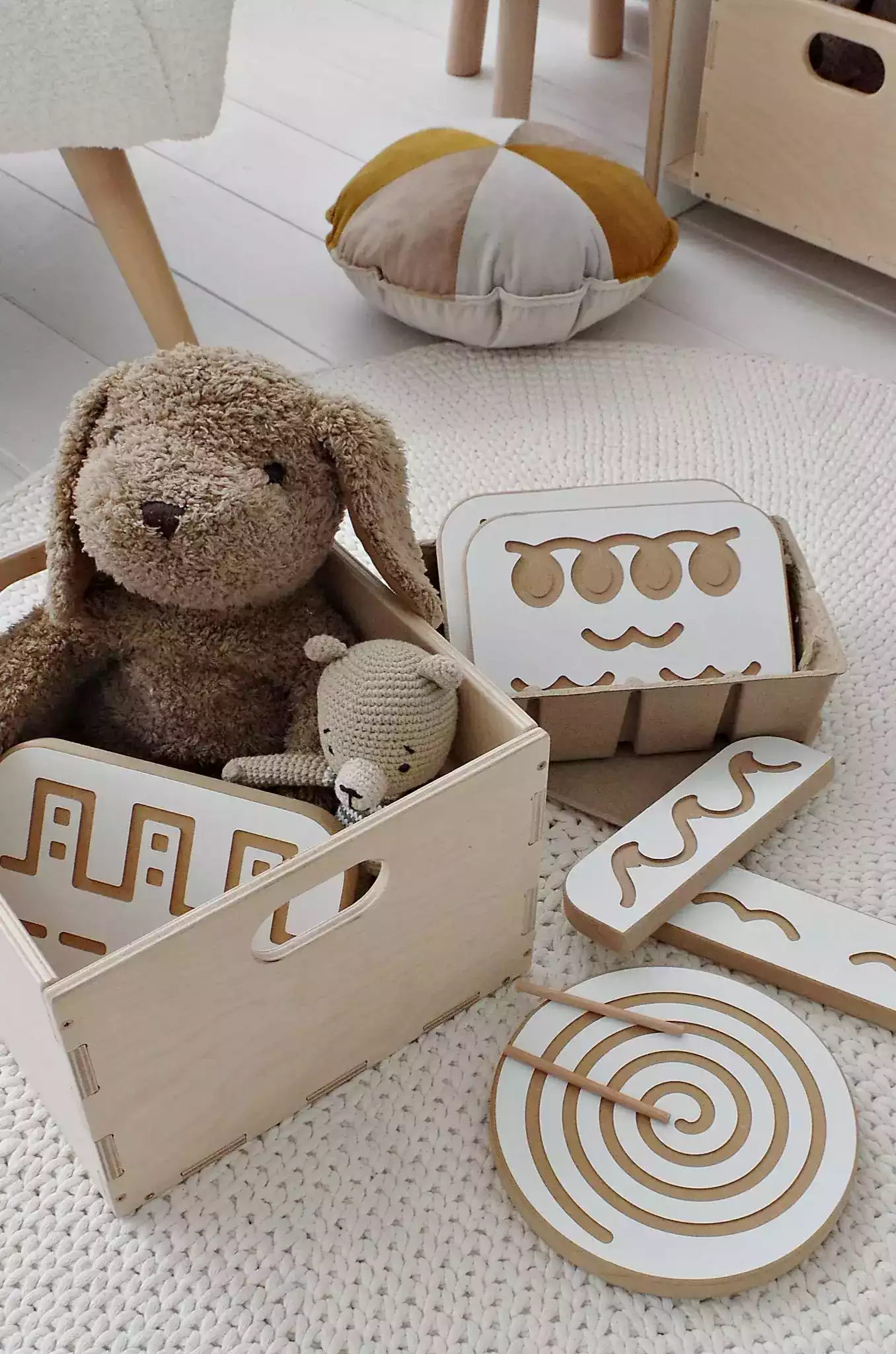 Babywood brand supports and creates products in the methodology of Maria Montessori. One of her fundamental postulates is just learning through play, gaining experience independently, moving from pleasure to work. Graphomotor boards perform this function perfectly. When your toddler grows out of the boards, you can use them as pictures on the wall in your child's room or let the little artist work by giving him paints, plasticine and whatever comes to your mind....
