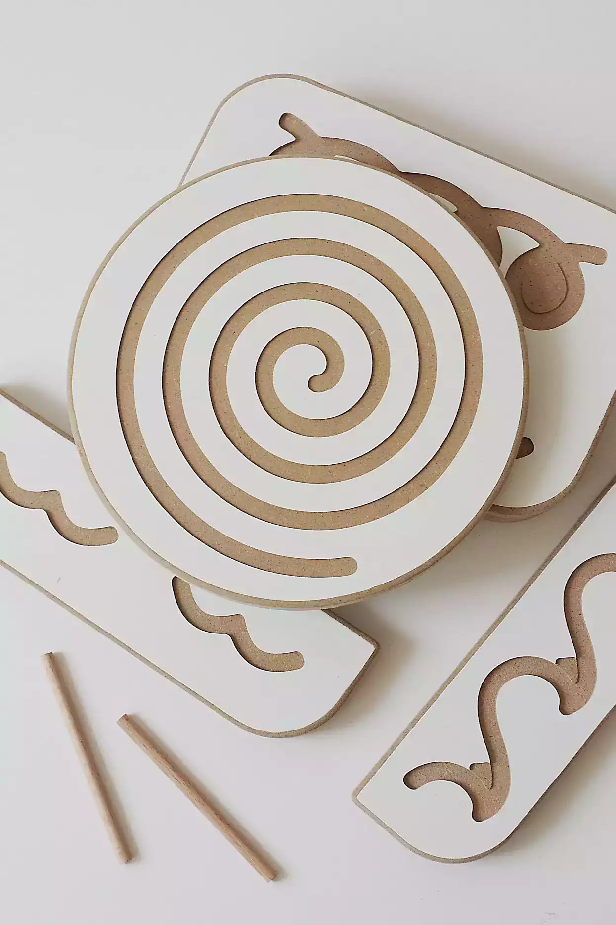 - a wooden board in the shape of a snail