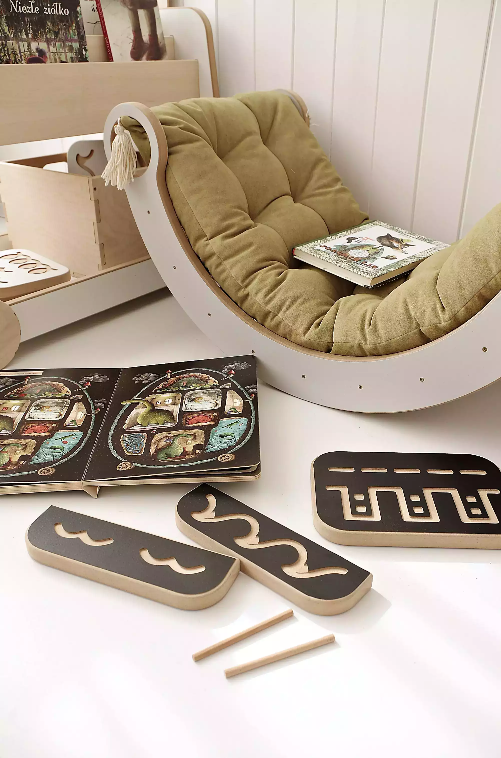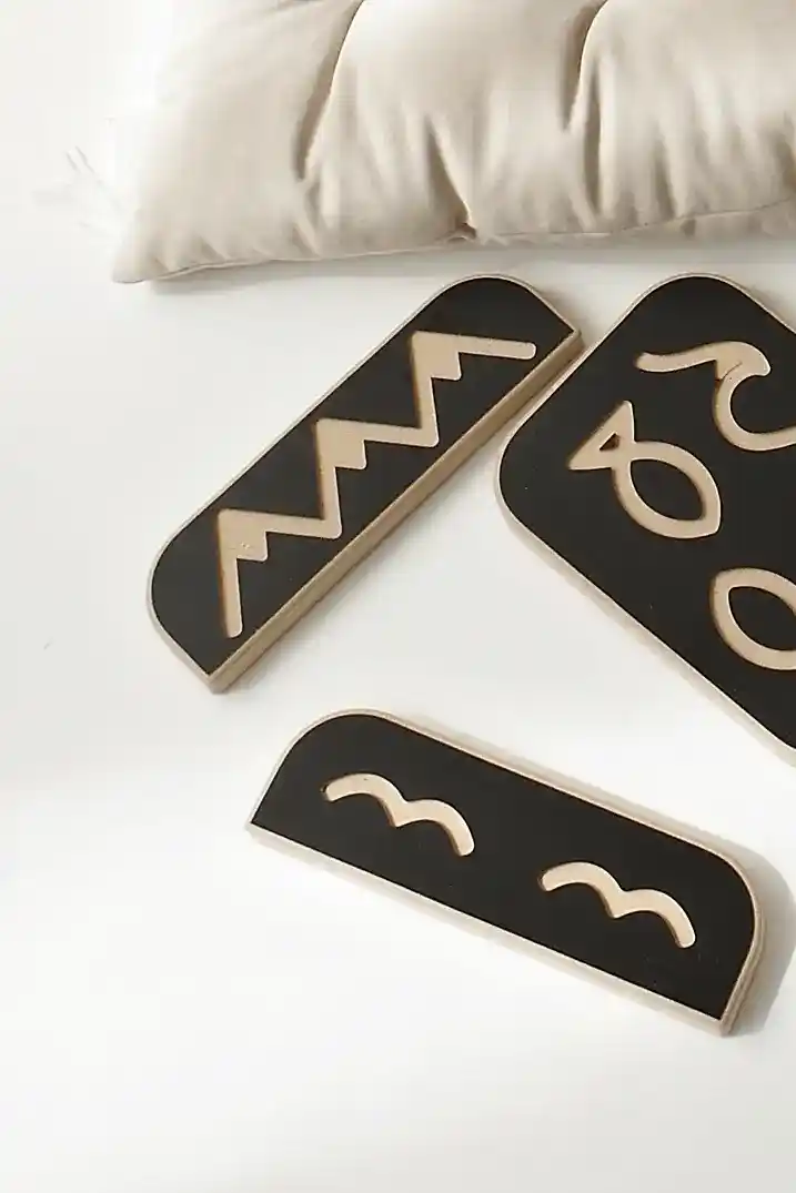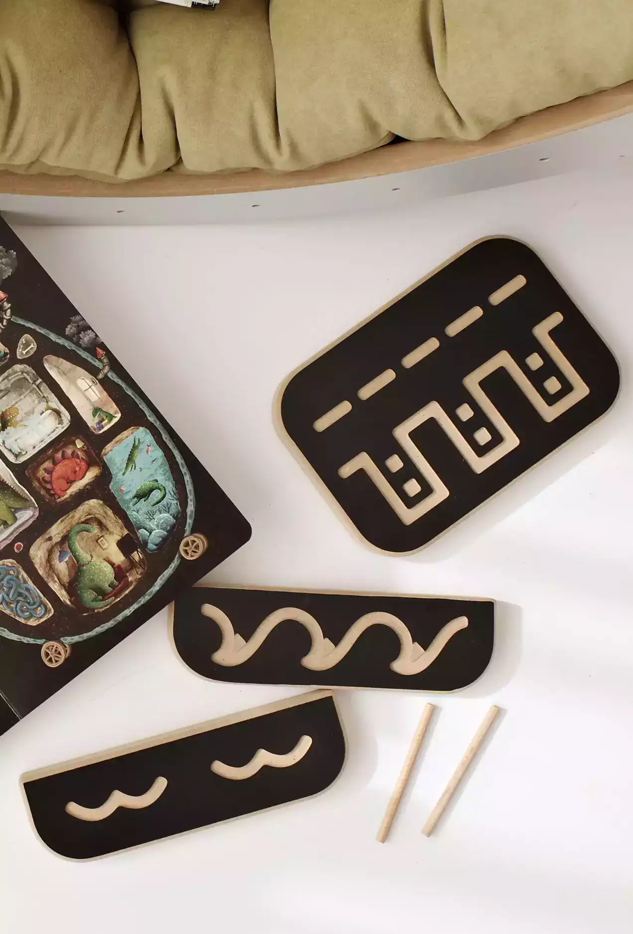 Each board has a gouged pattern with different levels of difficulty. With the help of fingers, a wooden stylus (included in the set), a brush or a crayon - the toddler outlines the visible shape, thus practicing the previously acquired motor skills. It's important to support the child at every stage of development whenever possible.