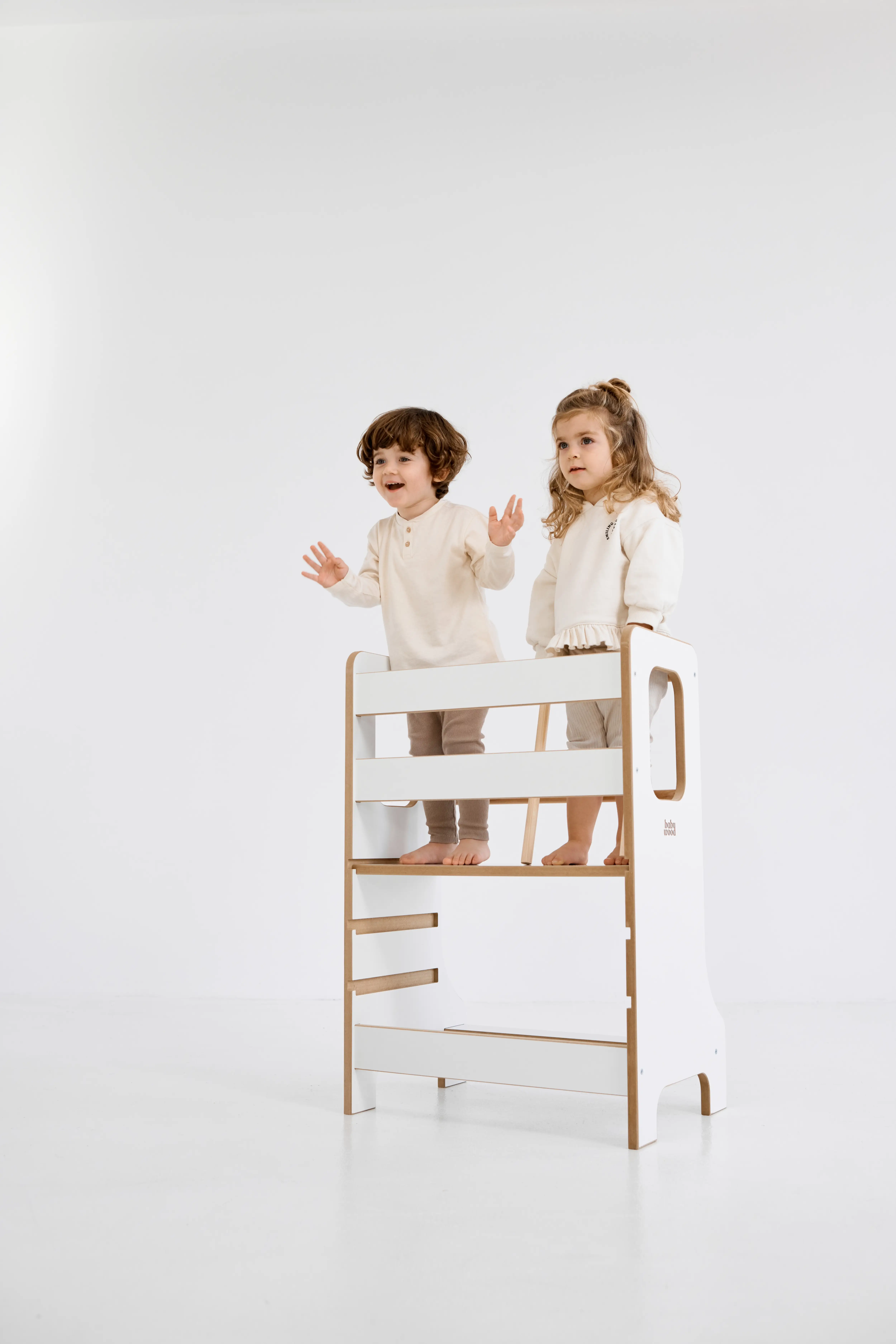 Kitchen Helper Double is a modern solution for two children who want to participate in meal preparation together. It features: