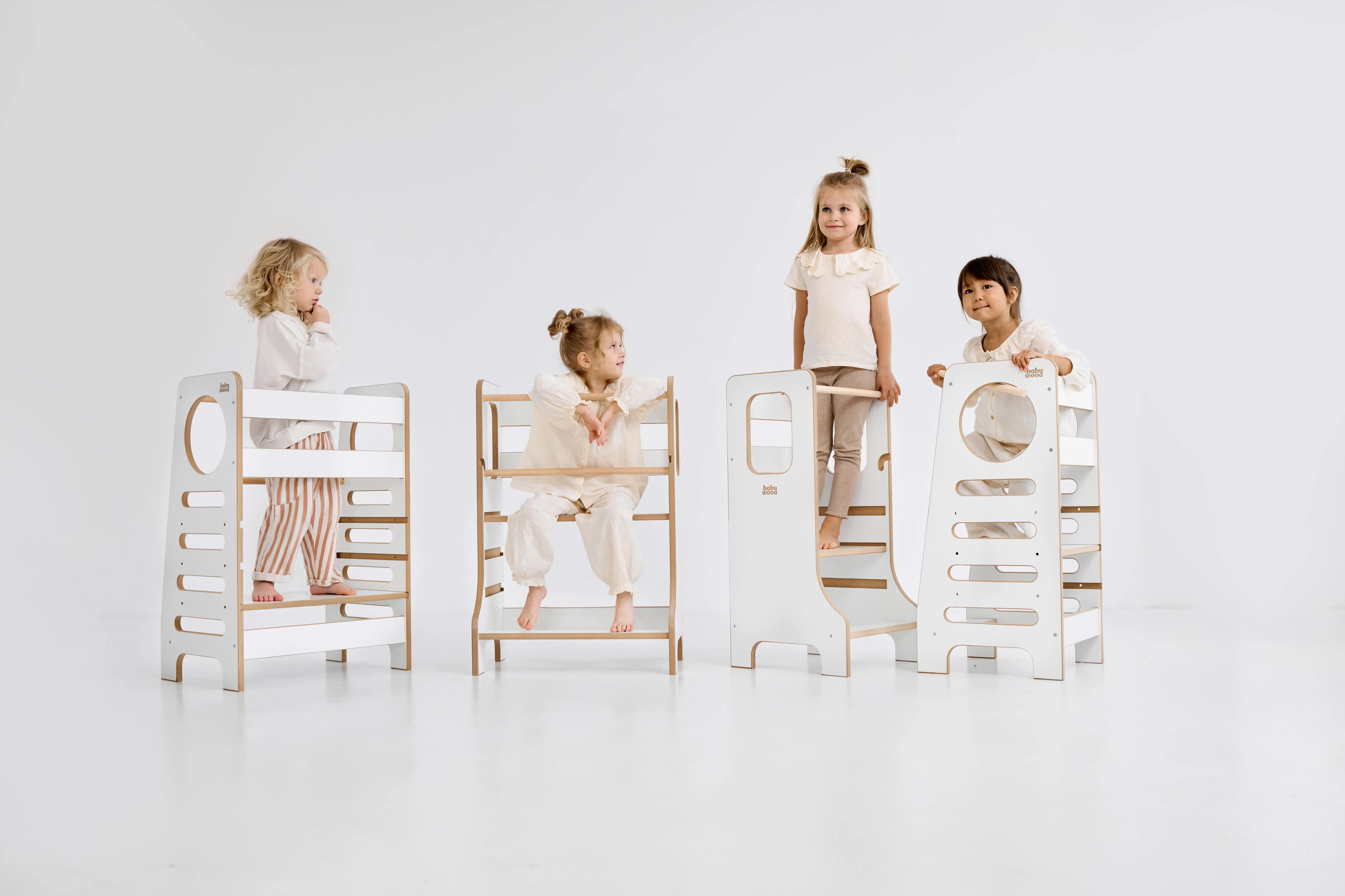 Spacious, adjustable platform: each child has his own place, adapted to his height and skills. It's a device that grows with your children, allowing them to participate in bespoke kitchen adventures.