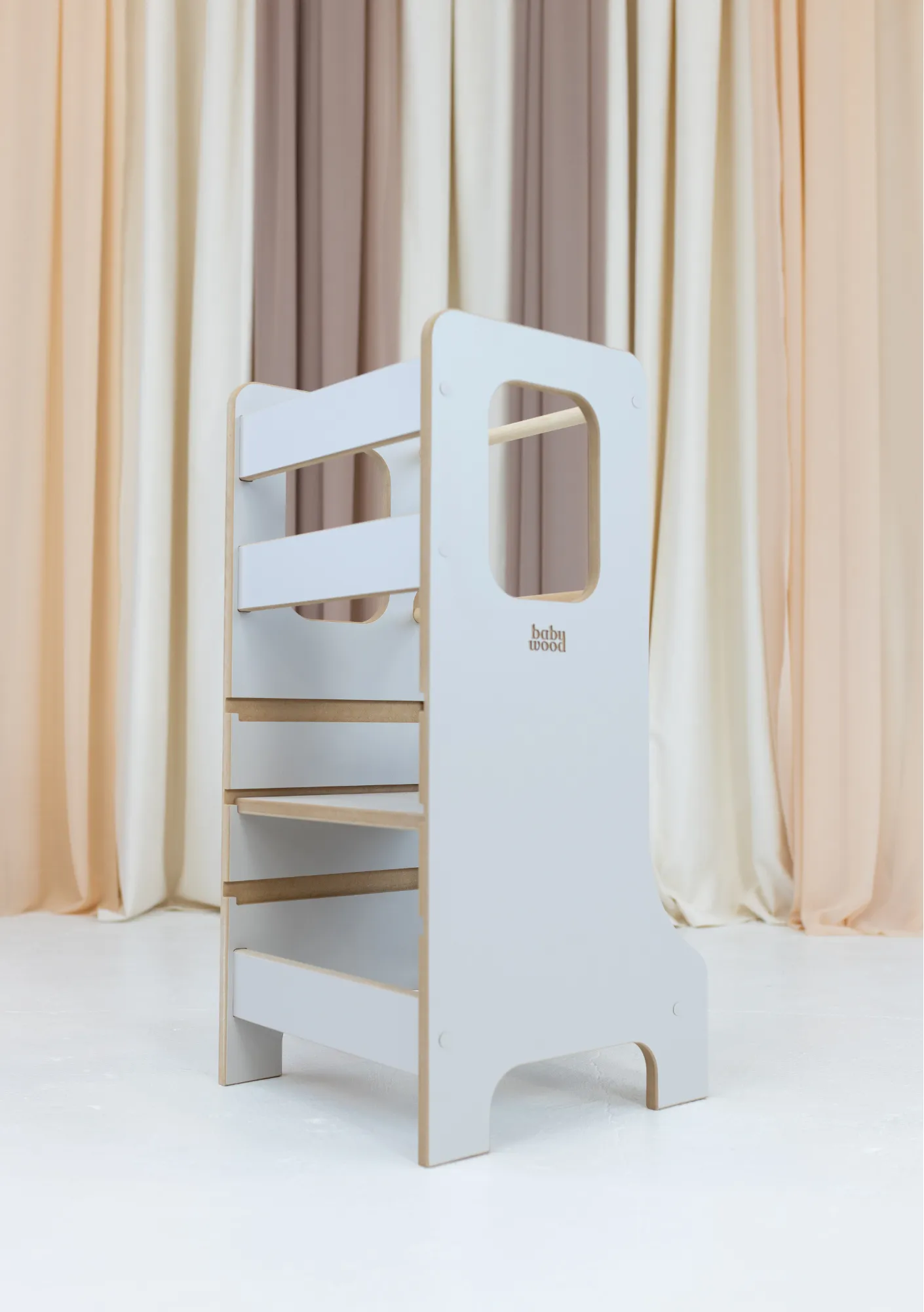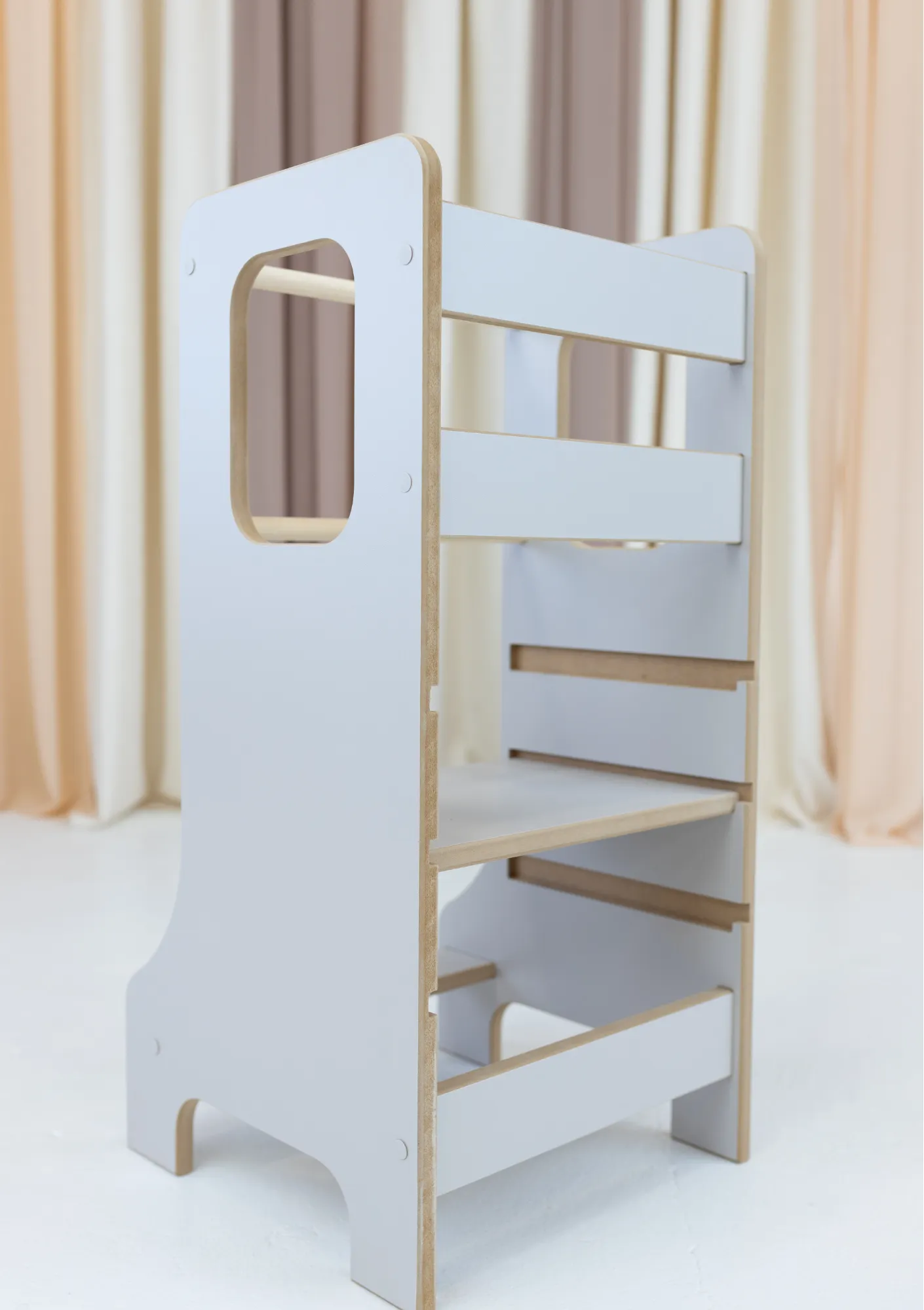 - Adjustable platform: thanks to 3 degrees of platform adjustment, Kitchen Helper will work well from the youngest age. Standing on his own, the toddler can easily start his kitchen adventure. The helper will grow with him.