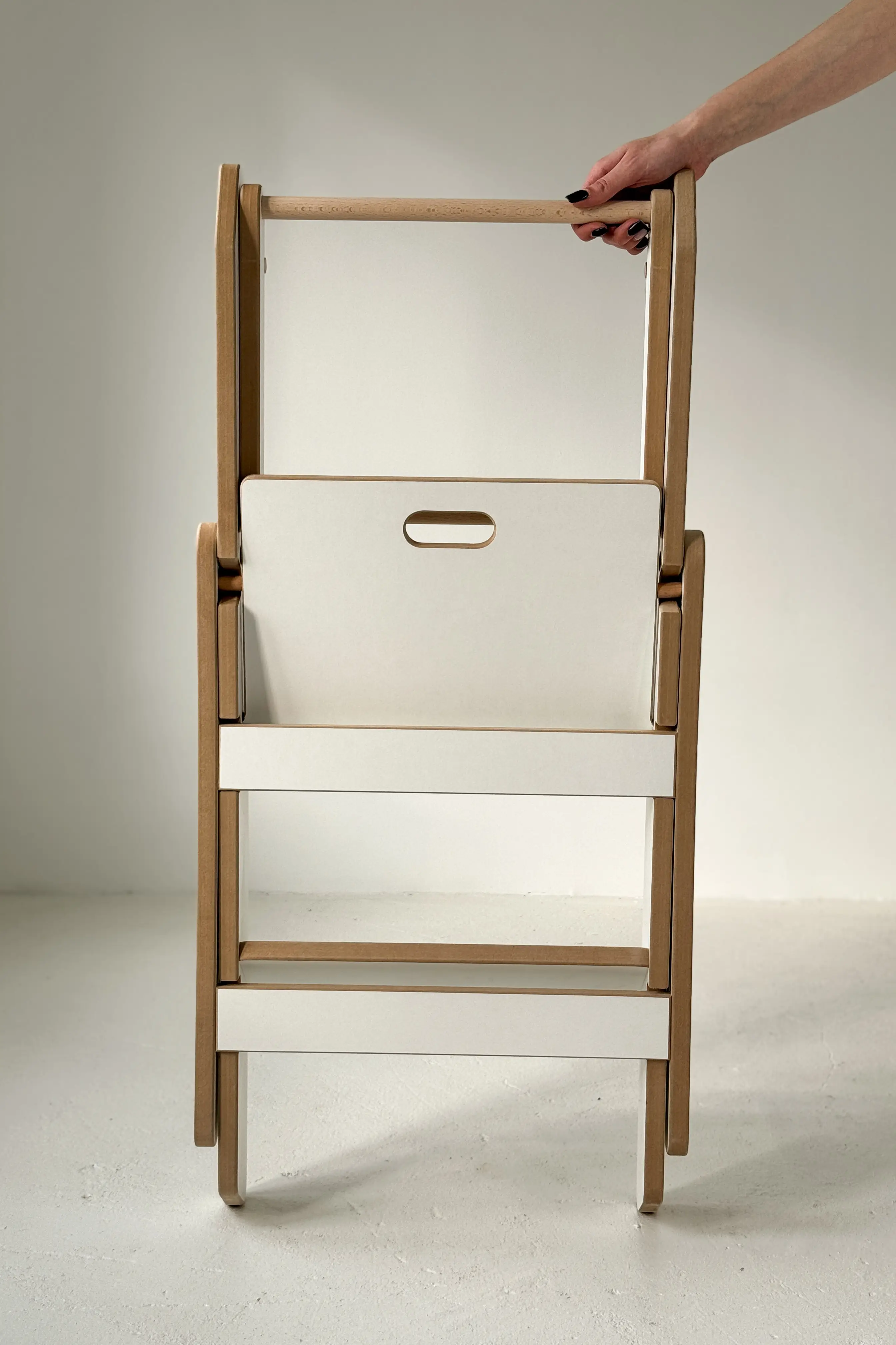 The Kitchen Helper Folding will be delivered to you in self-assembly form. No worries, it's easy! Assembly is extremely easy and intuitive. We include detailed instructions that will help you step by step to build this functional and safe place for your child in the kitchen. In a short time, you will gain this great support that will allow your little cook to participate in daily preparations.