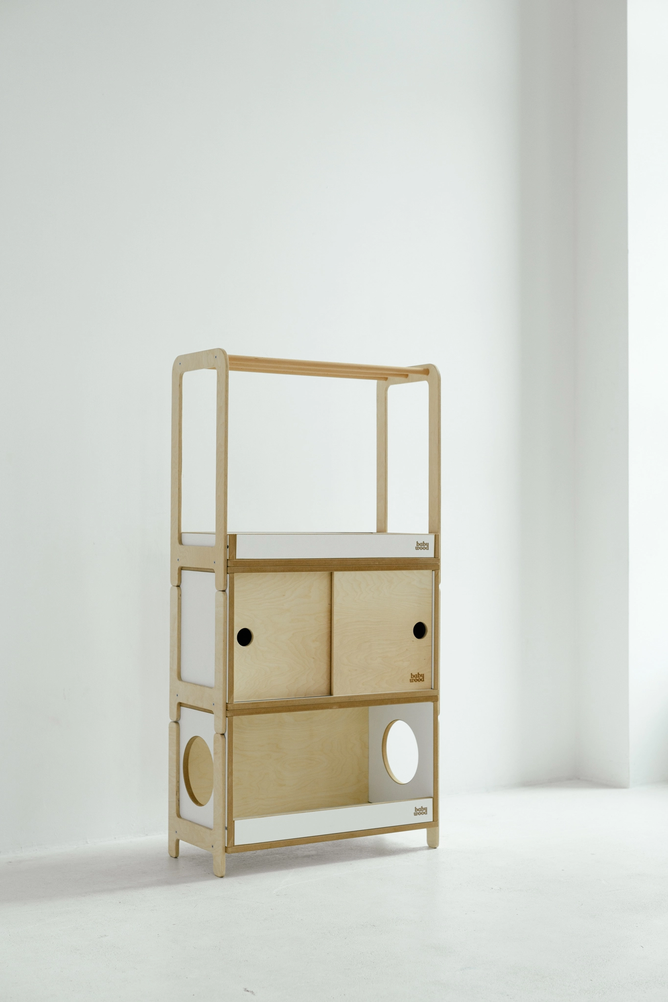 - one set = many possibilities: you can choose from four available modules: bookcase, coat rack, open bookcase for toys, or cabinet with sliding doors. Each of them can be an independent piece of furniture. We can also combine them into sets,